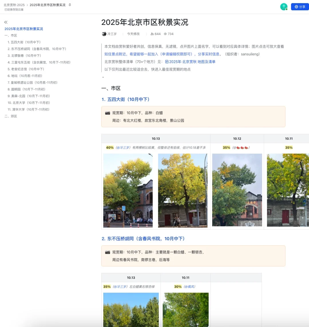 其他十几个地方的会按老规矩下午或晚上更新到「北京赏秋实况」文档里(类似图17,另外赏秋名单18)