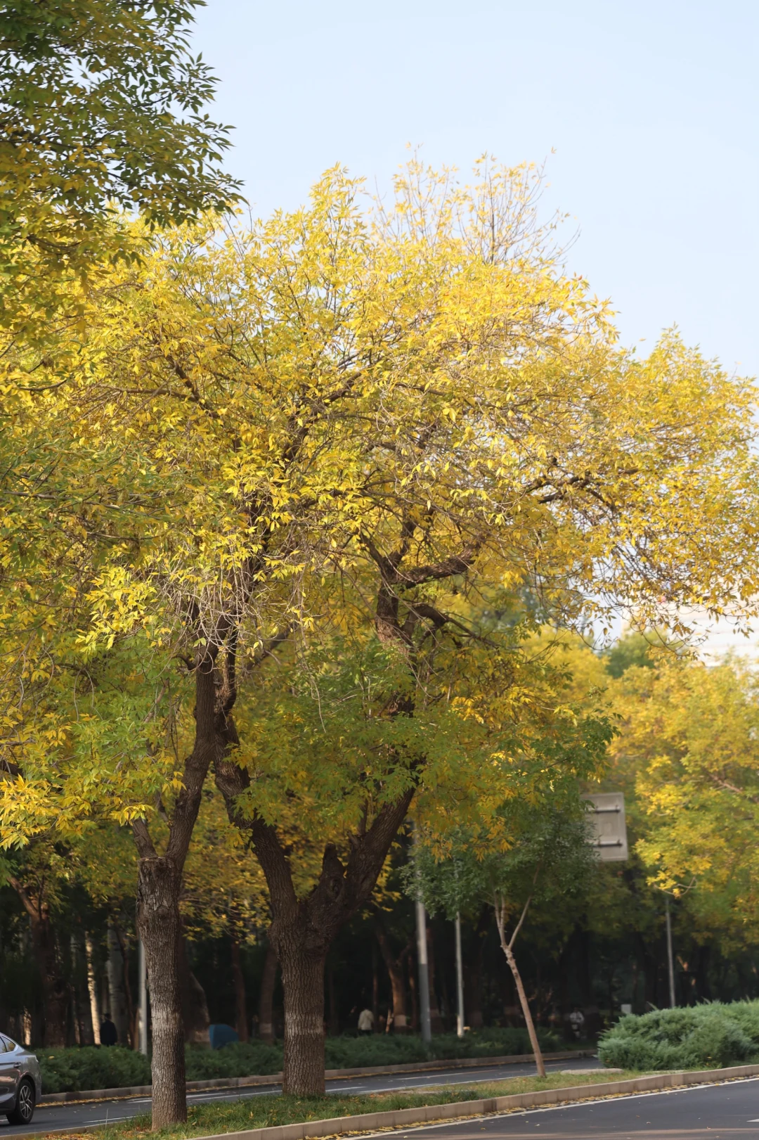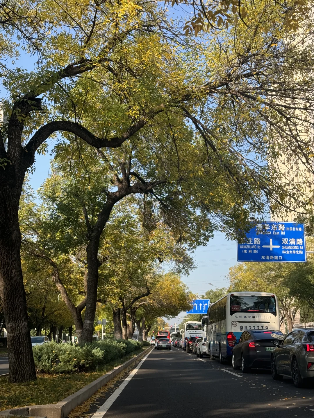 刚今天早上拍的清华二校门的银杏,感觉进度不到20%。还绿着。