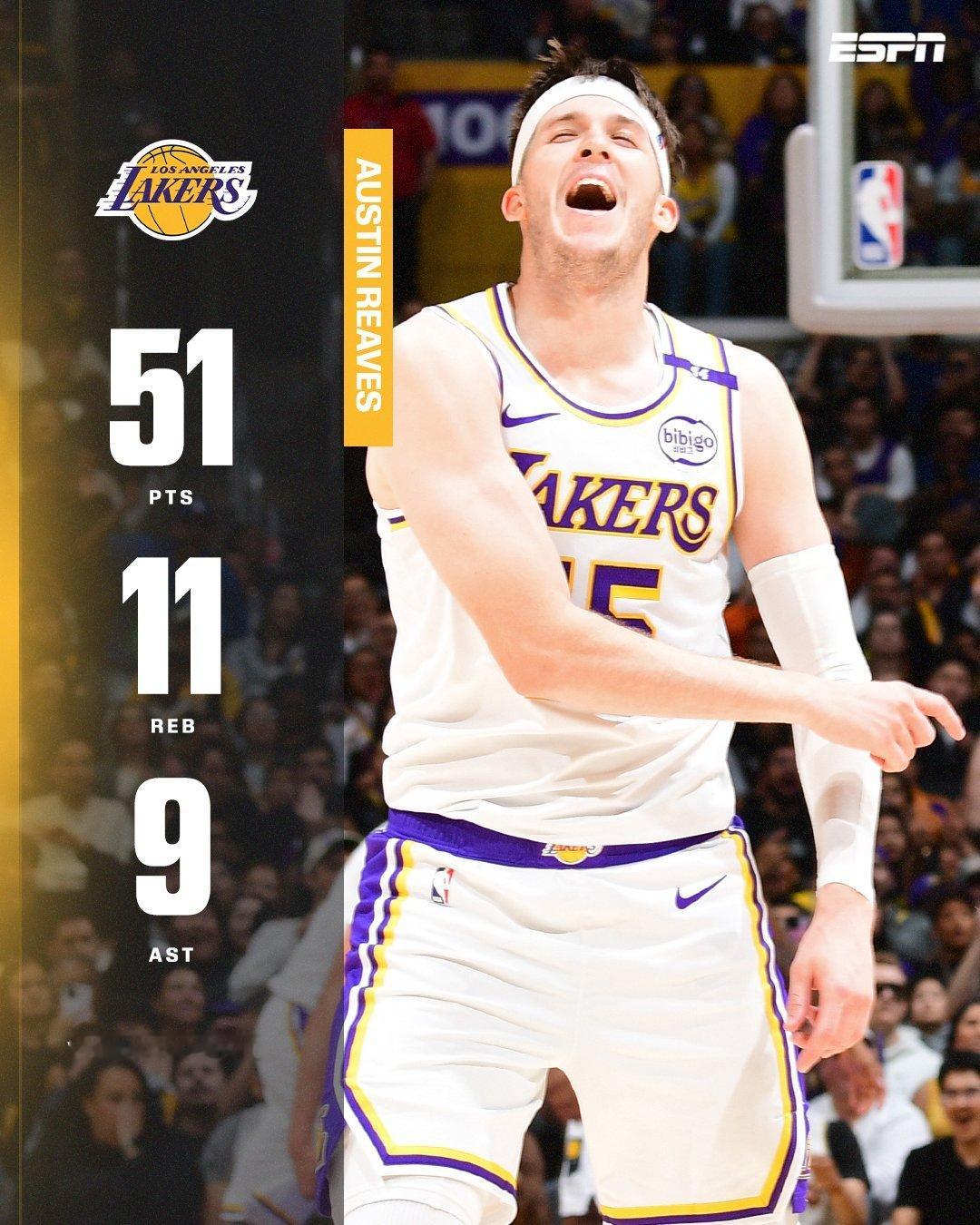 里夫斯51分湖人vs国王