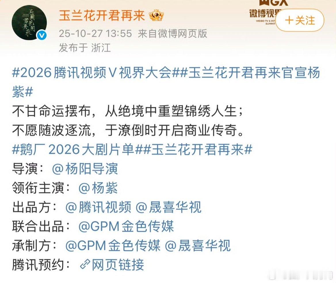 杨紫[超话]杨紫事业脑杨紫玉兰花开君再来无缝进组 杨紫真事业闹啊!期待吧!