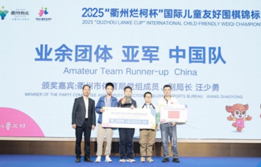 段博尧勇夺烂柯杯国际儿童友好围棋锦标赛冠军 中国围棋协会、衢州市人民政府于2023年创办的衢州烂柯杯国际儿童友好围棋赛于今年升格为锦标赛,除了业余团体赛项目外,首次增加了职业个人组项目的比赛,年龄要求7岁~18岁的职业棋手。 大赛为围棋走向世界,为围棋的普及,加强各国、地区的围棋交流创造了好的平台和机会。 职业个人组: 名额分配为中国8人,中国台北、日本、韩国各2人,共14人参加职业组的14强角逐。 14位青少年棋手经过七轮的积分循环赛,中国队包揽冠亚军。 中国16岁的小将段博尧六段,七轮比赛中分别战胜了吴彦谌(台北)、林子杰、赵相衔(韩国)、韩墨阳、周子弈、马靖原、邱禹然,七战全胜,一骑绝尘,勇夺本届国际大赛的冠军。 中国16岁的马靖原六段5胜2负,积10分获得了亚军。 韩国赵相衔四段也同是5胜2负积10分,但比直胜,负于马靖原,获得了季军。 获得了第4~第14名的依次是:韩墨阳、周子弈、林子杰、邱禹然、奇晈燦(韩国)、尹成志、田沐沐、李嘉馨(台北)、柳原咲辉(日本)、吴彦谌(台北)、朝日悠俊(日本)。 业余团体组: 有来自中国、中国衢州、中国台北、日本、韩国、新加坡、美国、马来西亚、阿根廷、智利、吉尔吉斯斯坦队、克罗地亚队等国家和地区的20支代表队,近80余位棋手参加了七轮的团体比赛。 韩国队七战全胜,获得了团体冠军。 中国队6胜1负积12分,获得了亚军。 欧洲围棋联盟以5胜2负积10分,获得了季军。 获得第4名~第10名的依次是日本队、中国台北队、新加坡队、泰国队、中国香港队、马来西亚队、美国队。 明年再会!