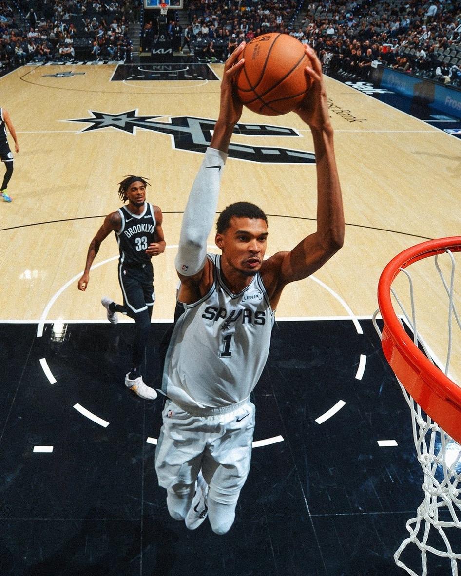 马刺球迷嗨翻了!有这样的球员真幸福!文班亚马连续两个超级封盖,回身在logo处扔进了一记超远三分! NBA官方:为什么@wemby看起来像是站着扣篮? 但为什么这仍然在某种程度上是合理的呢?