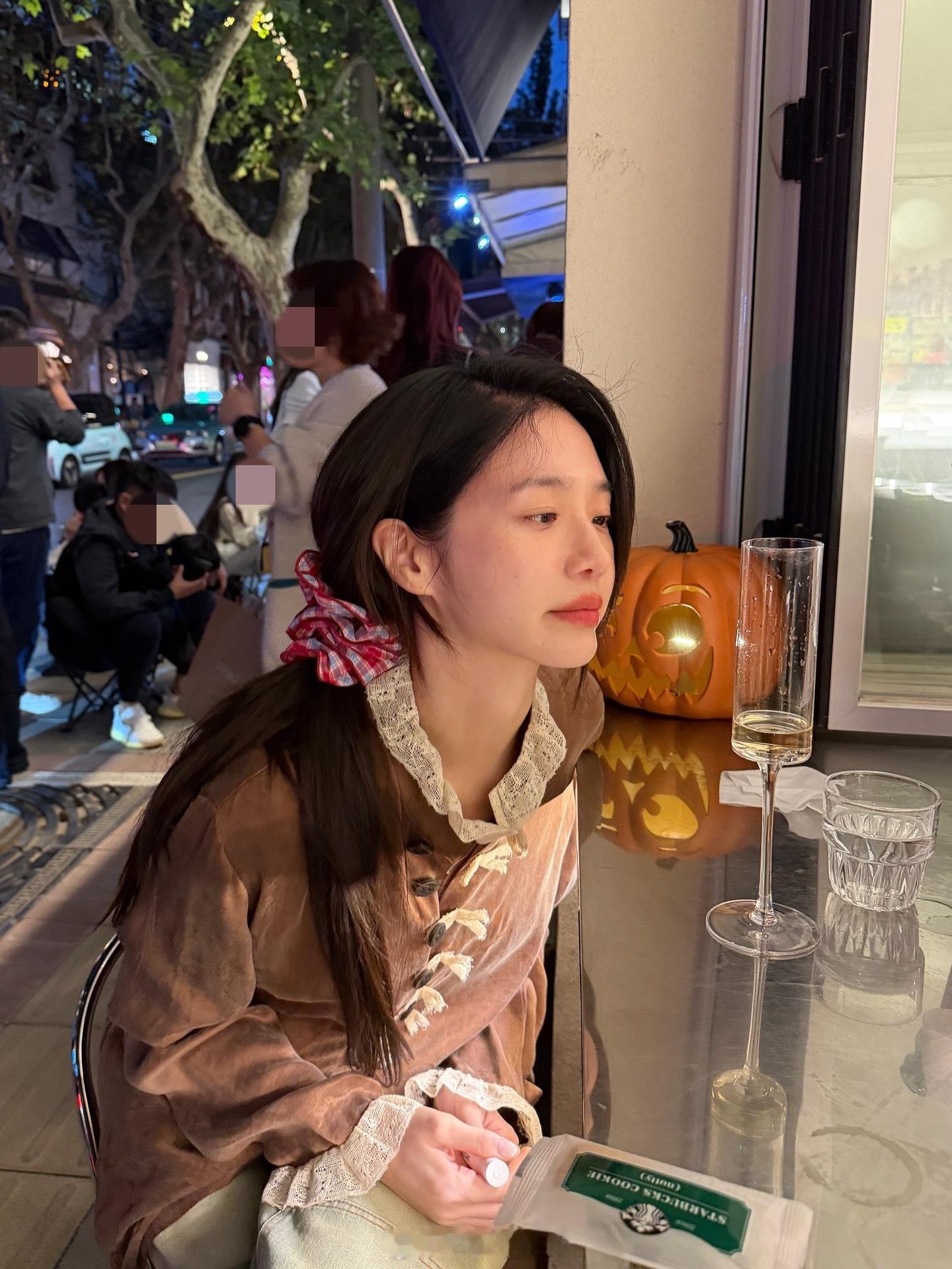 张天爱跟素人合影,胯真的好宽,大宅院似的