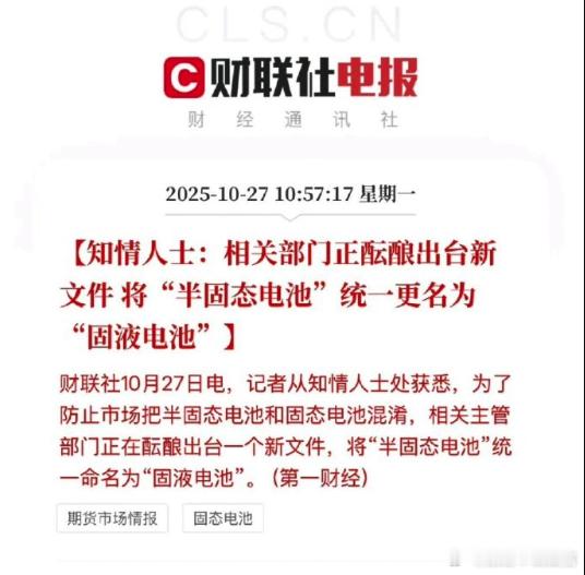 半固态电池将统一更名半固态电池或将更名固液电池 早该改名了,固态电池和半固态电池,就差了一个字,但实际相差十万八千里,这不引人误导么?