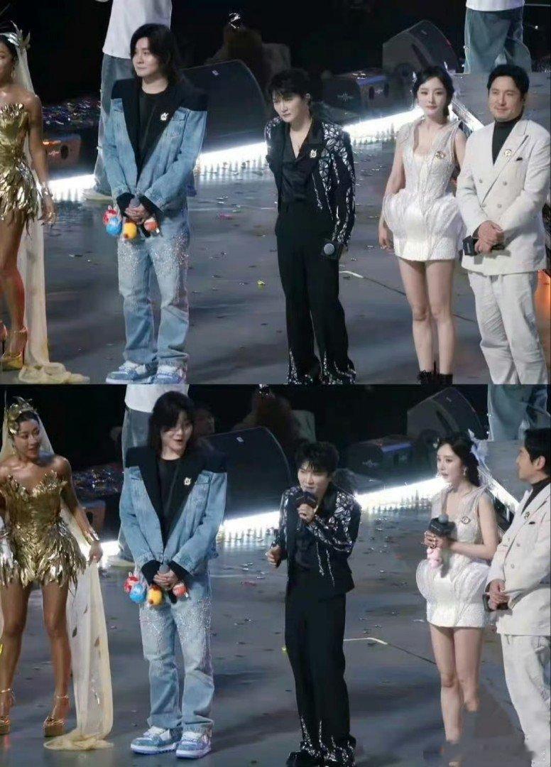 杨幂黄明昊吉克隽逸听到周深的反应 黄明昊和吉克隽逸听到周深高音,那震惊表情绝了,就像在演我。杨幂还在一旁手动打光,周深这现场感染力,直接把氛围拉满,太牛啦。