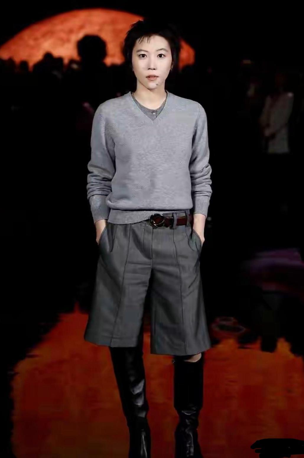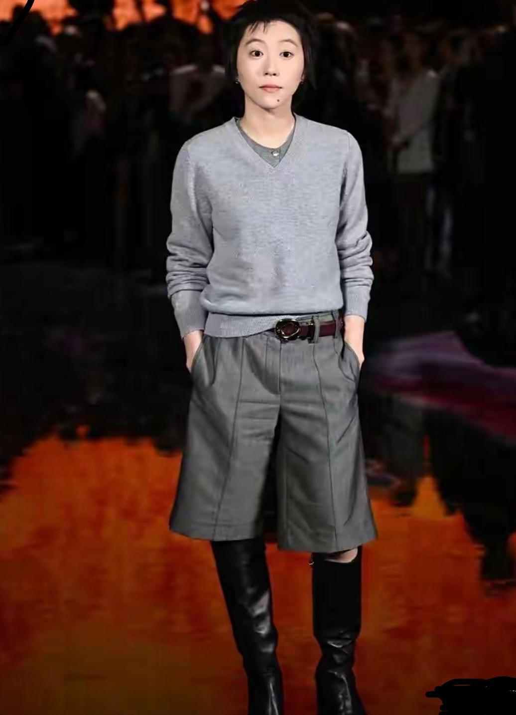 窦靖童穿这一身衣服,再配上一双长筒皮靴,显得很随意松弛又时尚。走起路来,还有几分年轻人的酷劲。