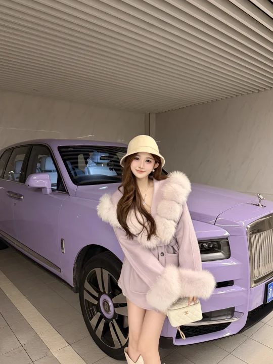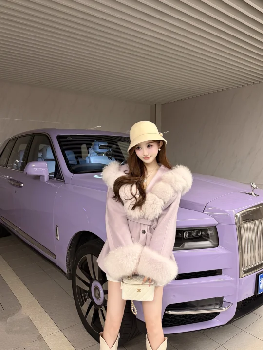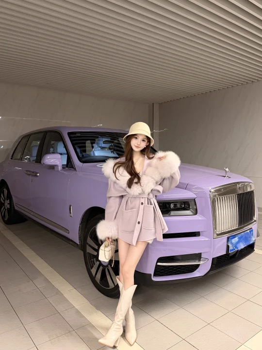来拍照了 拍照姿势 紫色果然很有韵味 停车场拍照