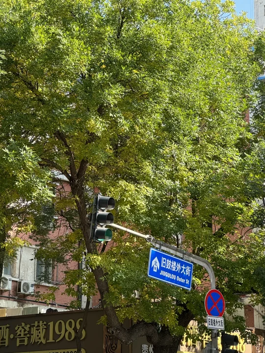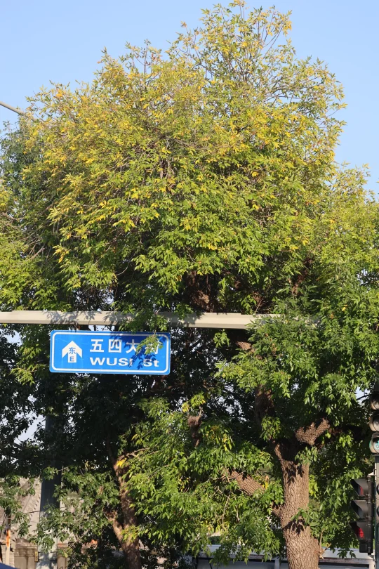 [向右R]图1~4:五四大街,变黄进度40%,不过主要有两棵树比较黄,其他还比较绿