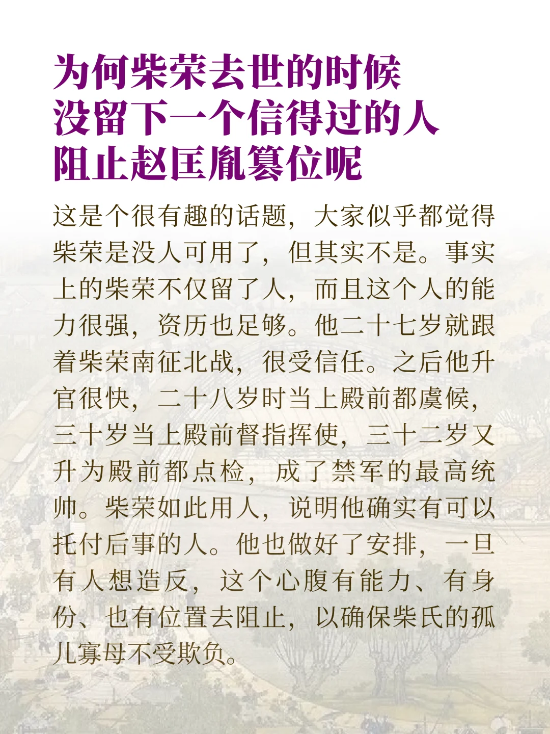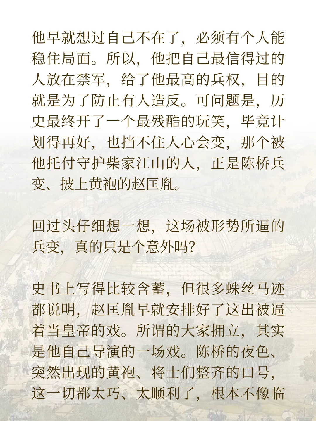 很多人都听过陈桥兵变的故事,赵匡胤披上黄袍、众人齐呼万岁,五代十国的乱局就这样被一夜改写。
