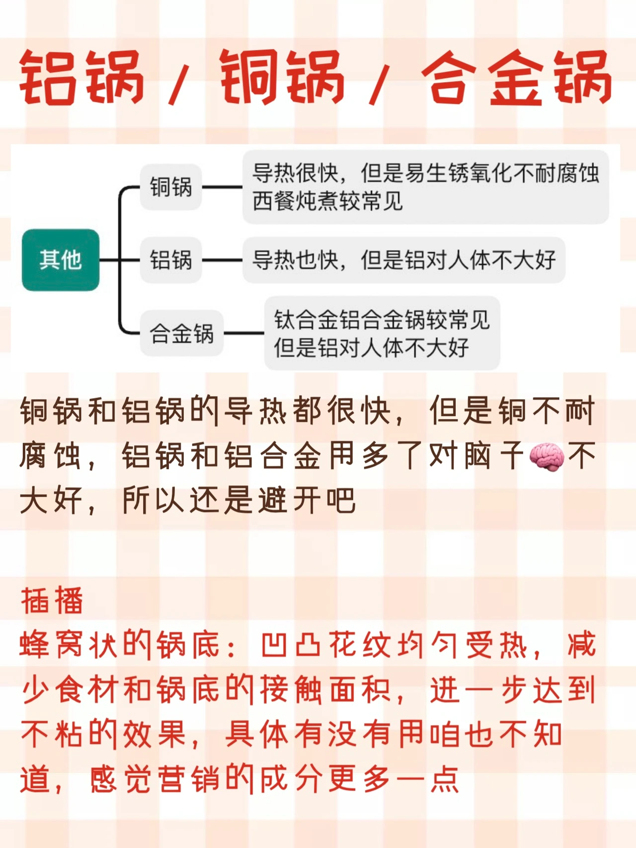 铜锅和铝锅的导热都很快,但是铜不耐腐蚀,铝锅和铝合金用多了对脑子🧠不大好,所以还是避开吧