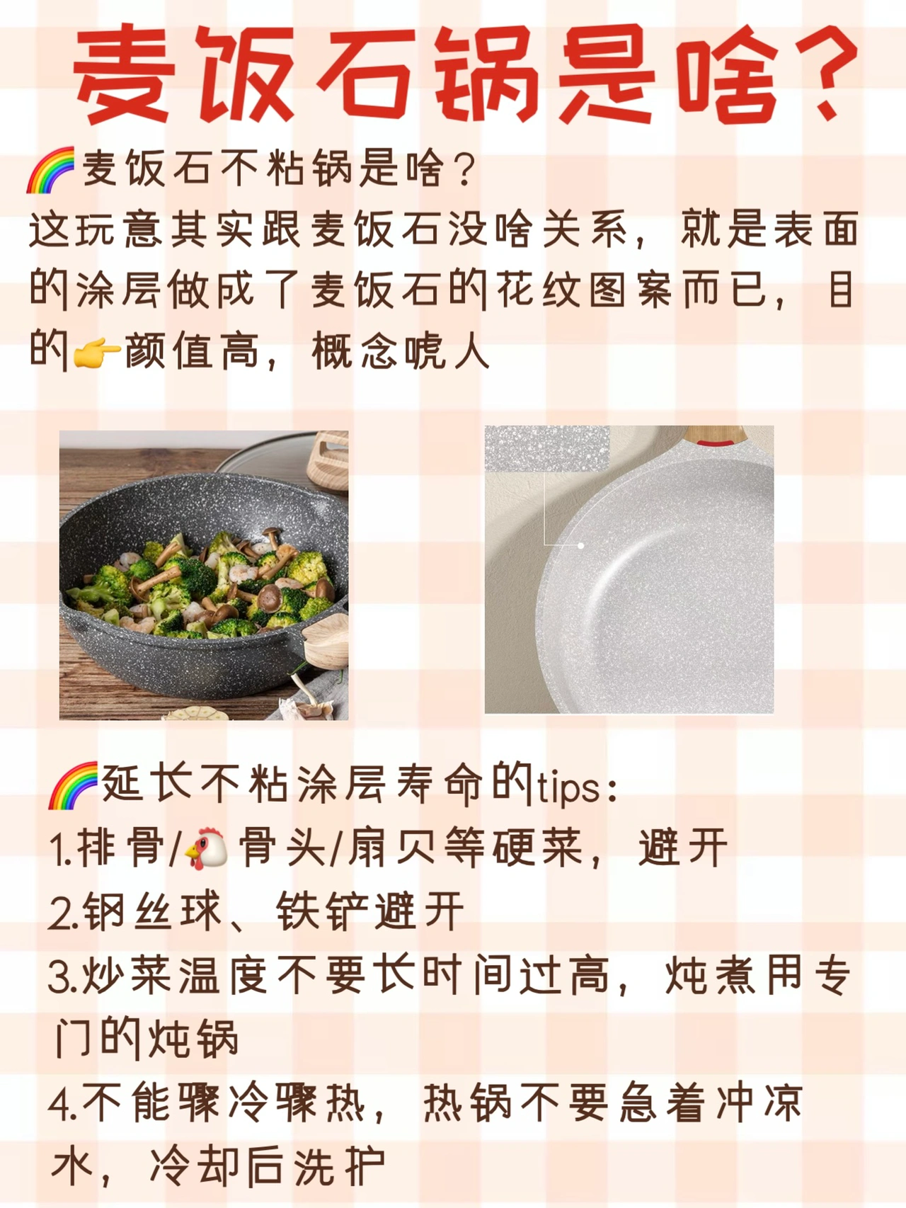 这玩意其实跟麦饭石没啥关系,就是表面的涂层做成了麦饭石的花纹图案而已,目的👉颜值高,概念唬人