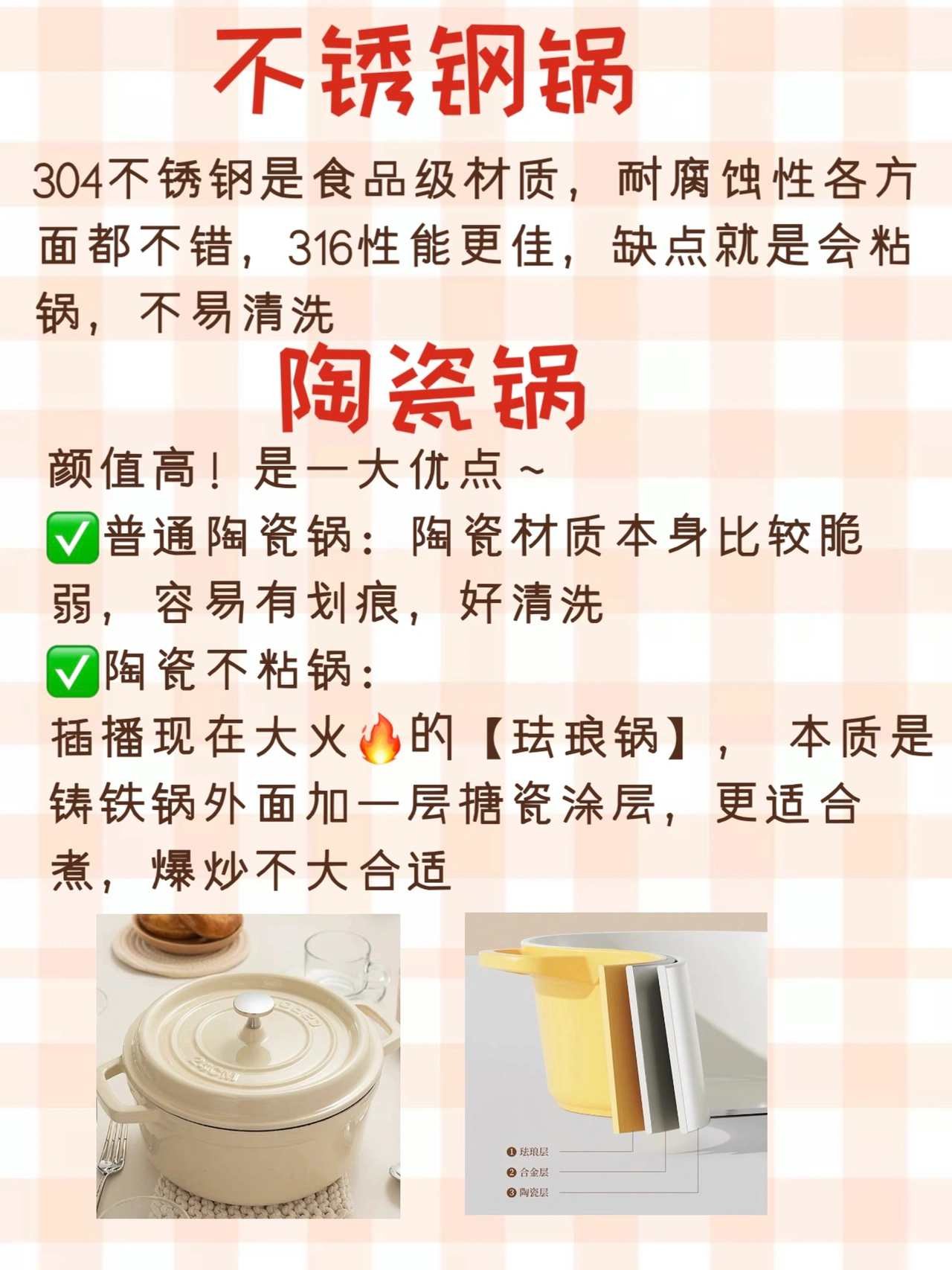 陶瓷不粘锅:常见的~珐琅锅,本质是金属外面加一层搪瓷涂层,更适合煮,爆炒不大合适