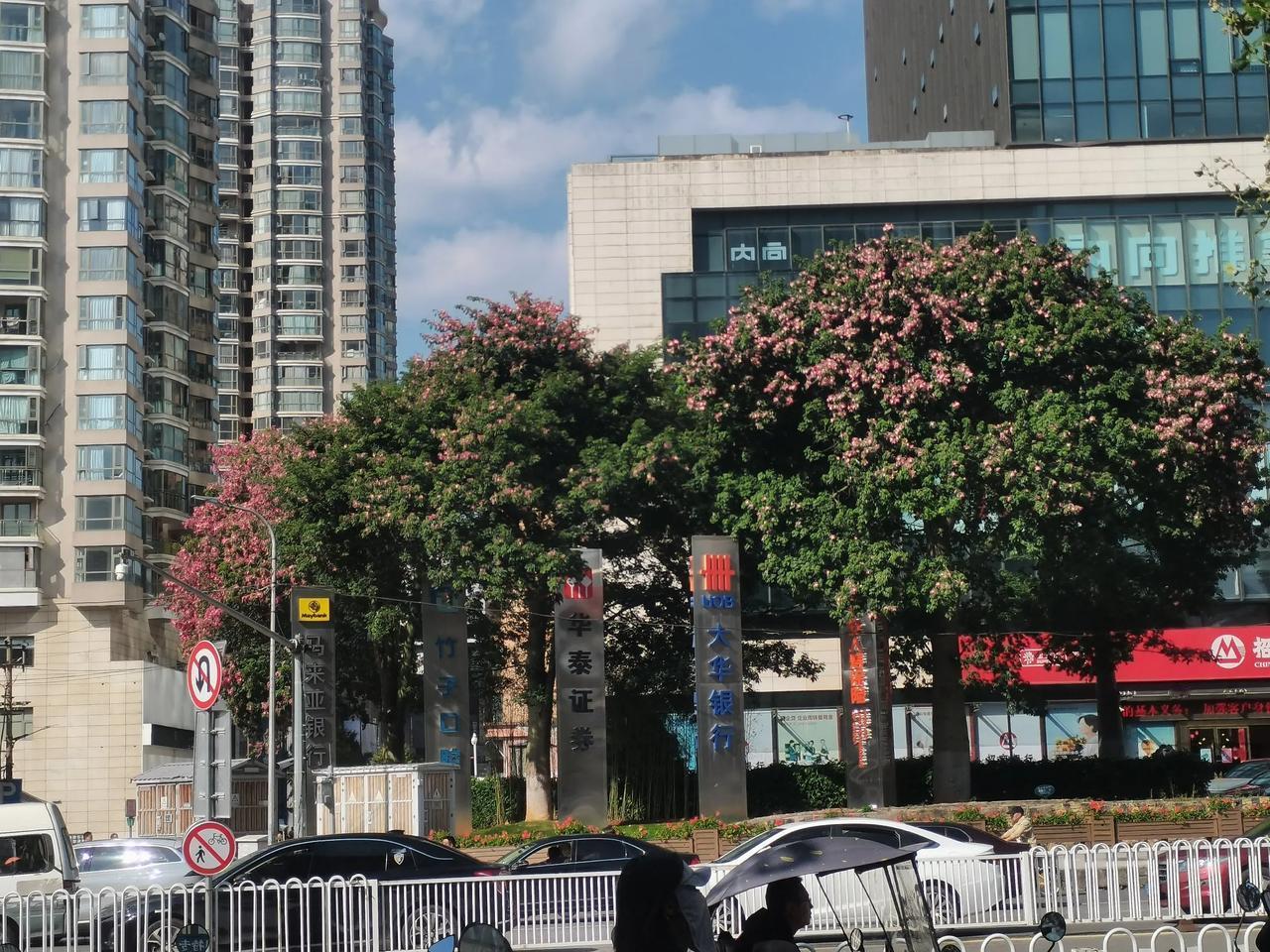 招银大厦,虽然在昆明高度不是很起哏,前二十甚至前三十都排不上,前四十也排不上,但是这座位于顺城购物中心旁边的写字楼租金收入可以进入昆明前二十,里面有马来西亚银行,渣打银行,大华银行等国内外金融总部,同时也是招商银行昆明总部。门口这些树不知道是什么树啊?现在还开了漂亮的花,所以说地段还是地段,这座金融总部大楼也是昆明金融中心的代表了吧!前久还有好多人说招商银行昆明总站要搬到巫家坝招商蛇口(招商丝路中心),应该暂时不会搬,这才是昆明的中心,巫家坝是未来的昆明新中心,说不定那个是以后的昆明金融第二中心了,反正最起码招商银行云南总部大楼近期是不会搬走的,如果到时候巫家坝能有5到10家国际银行及国内银行总部大楼才是真正的金融中心了。以上仅供参考,属个人意见!招商银行大楼 昆明地标写字楼 滇池路写字楼