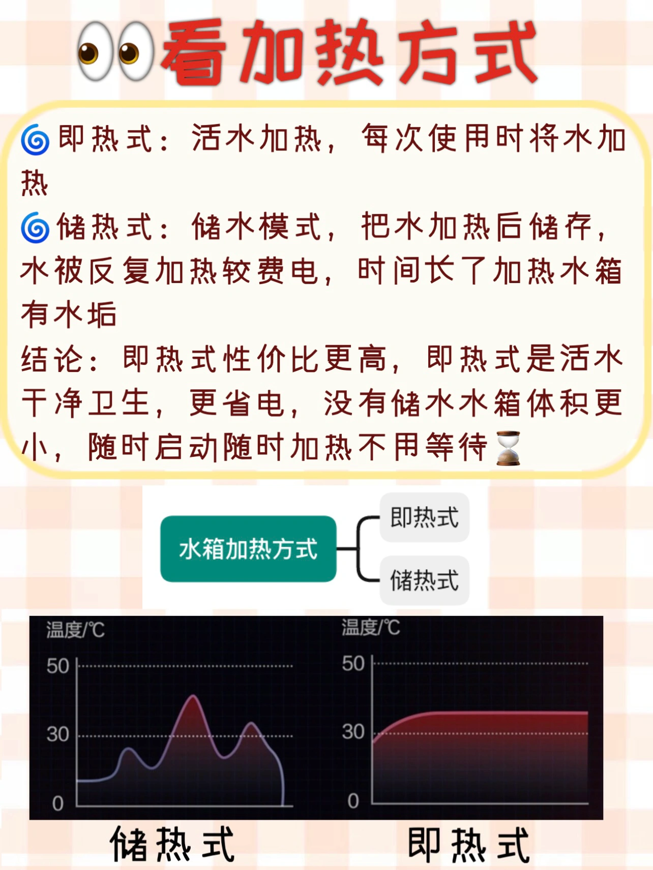 主要有即热式和储热式,即热式性价比更高,即热式的活水干净卫生,更省电,没有储水水箱体积更小,随时启动随时加热不用等待⌛️