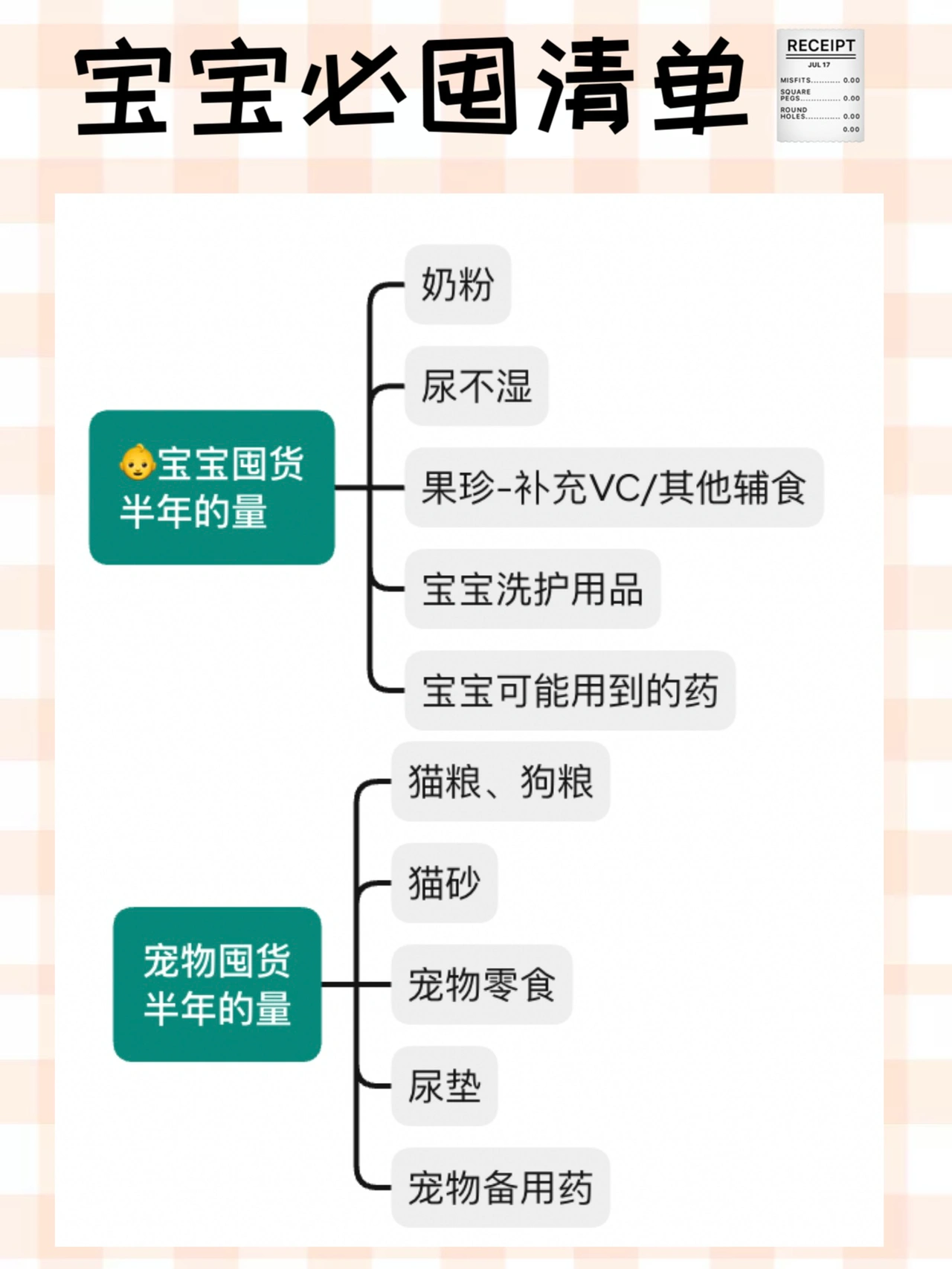 真希望这个清单派不上啥用处,但是未雨绸缪,还是多做准备,各地的宝子都可以参考着囤起来,也别忘了给爸妈囤一份哦~