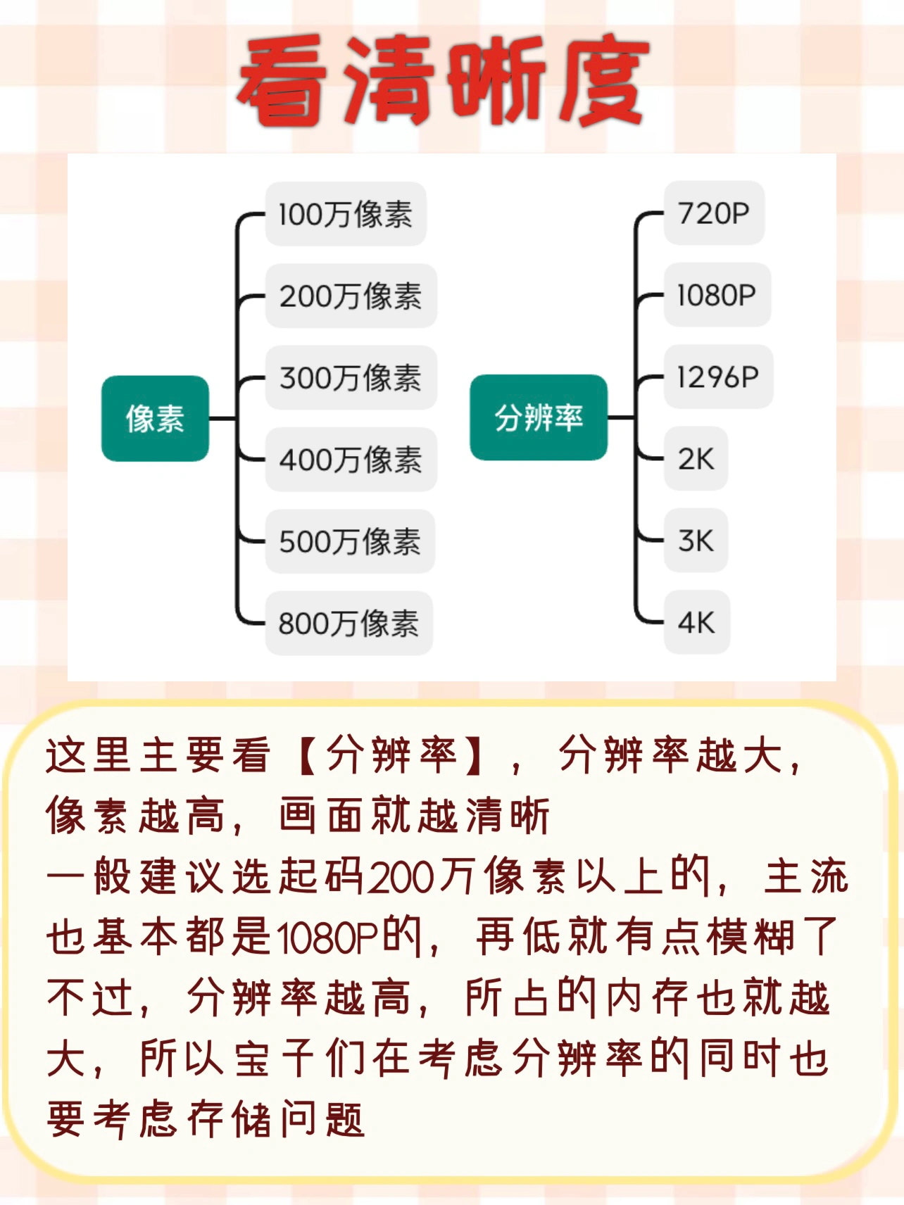一般建议选起码200万像素以上的,主流也基本都是1080P的,再低就有点模糊了