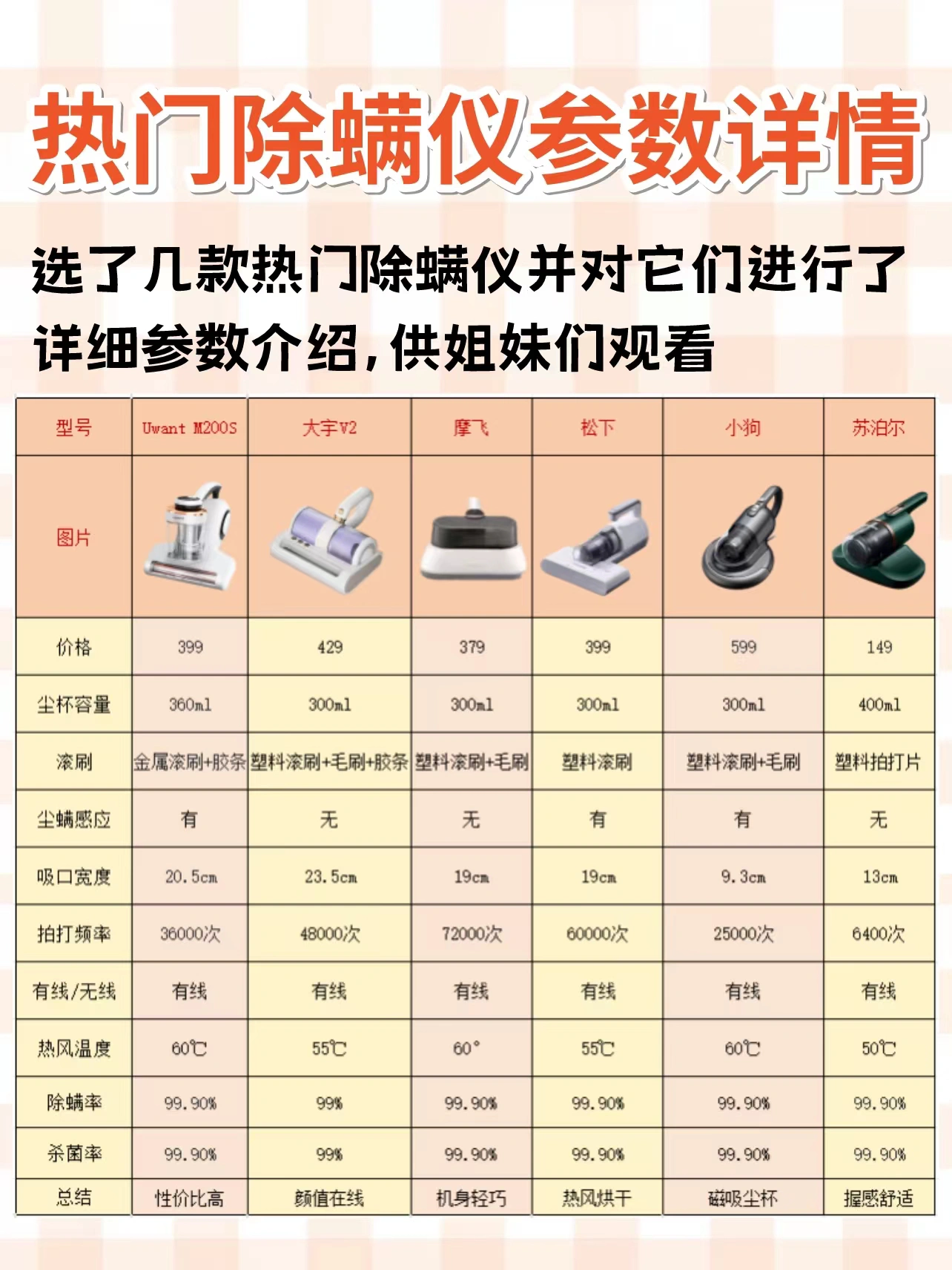 怕你们踩雷我可是花了功夫给你们总结测评了几款市面上比较热门的除螨仪