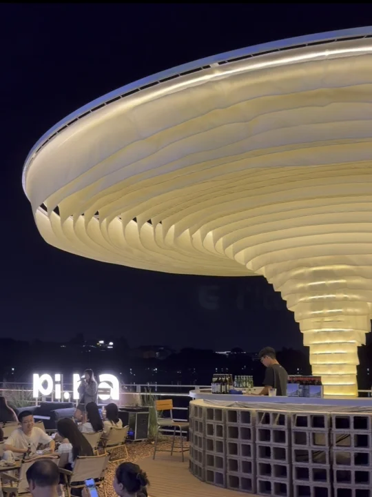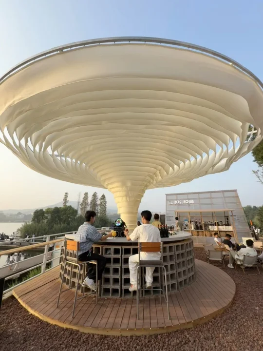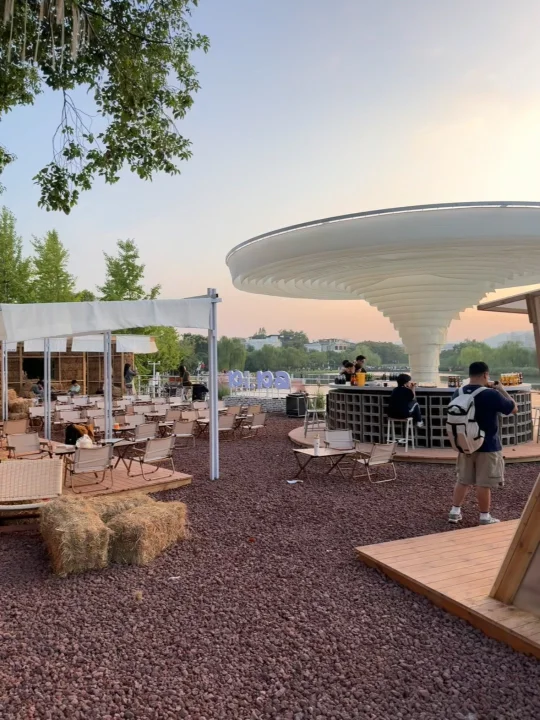 和朋友偶然路过这家户外咖啡店➕bar 巨型“飞碟”很适合拍照打卡 建议5.到 落日 晚风 微醺 和三五好友chill下 长沙新店长沙咖啡馆长沙拍照长沙周末好去处COTD咖啡探店日咖夜酒湖边咖啡店bar