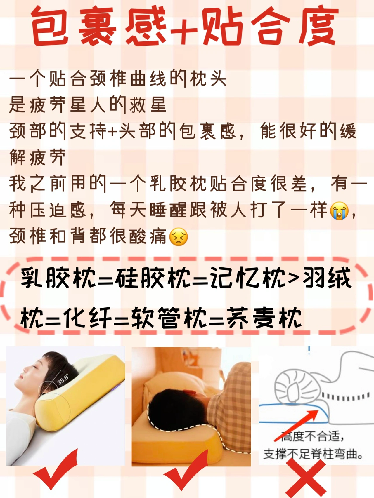 宝子们,之前写过枕头怎么挑的干货,很多小伙伴说看完还是纠结不知道怎么选,那今天我们再针对不同材质枕头的不同维度和使用感受,具体展开说说👇