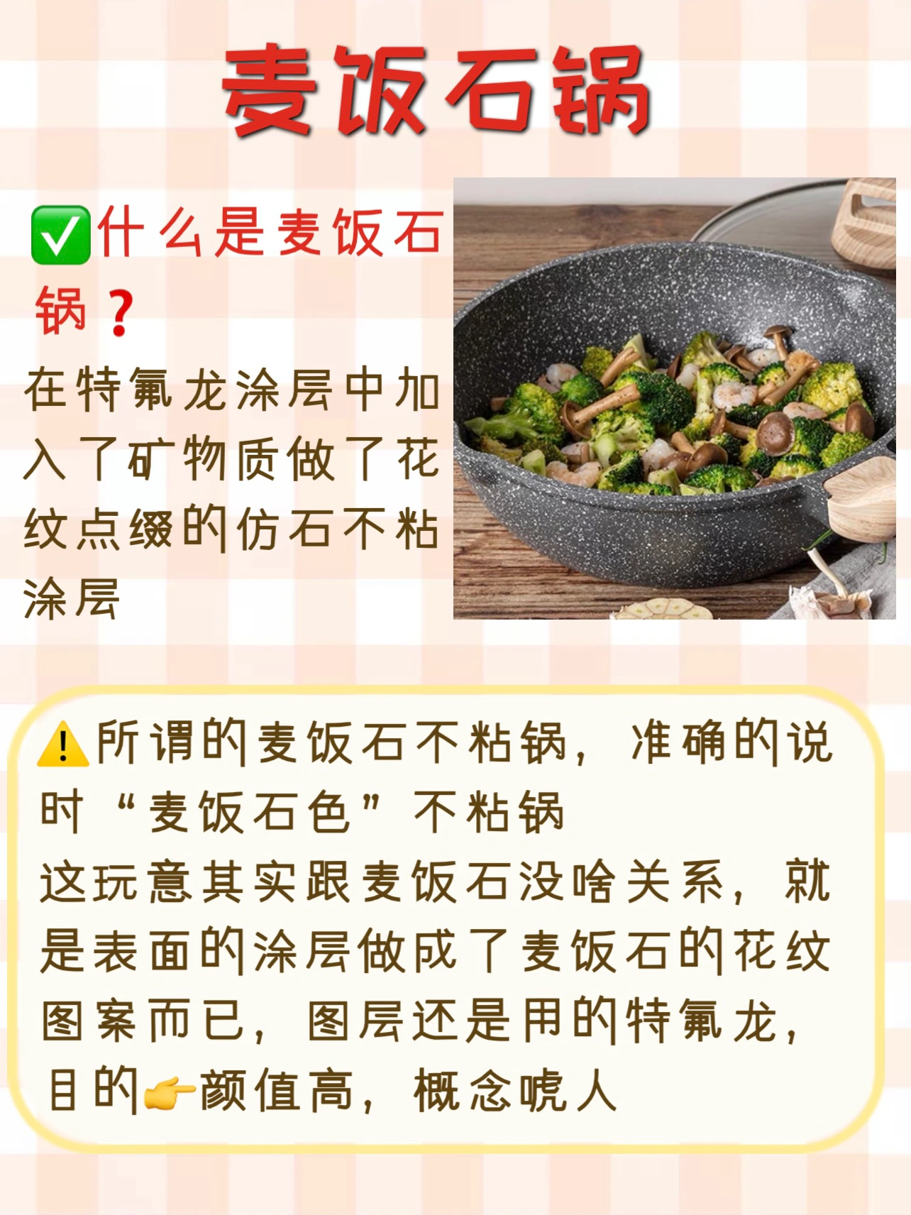 这玩意其实跟麦饭石没啥关系,就是表面的涂层做成了麦饭石的花纹图案而已,目的👉颜值高,概念唬人
