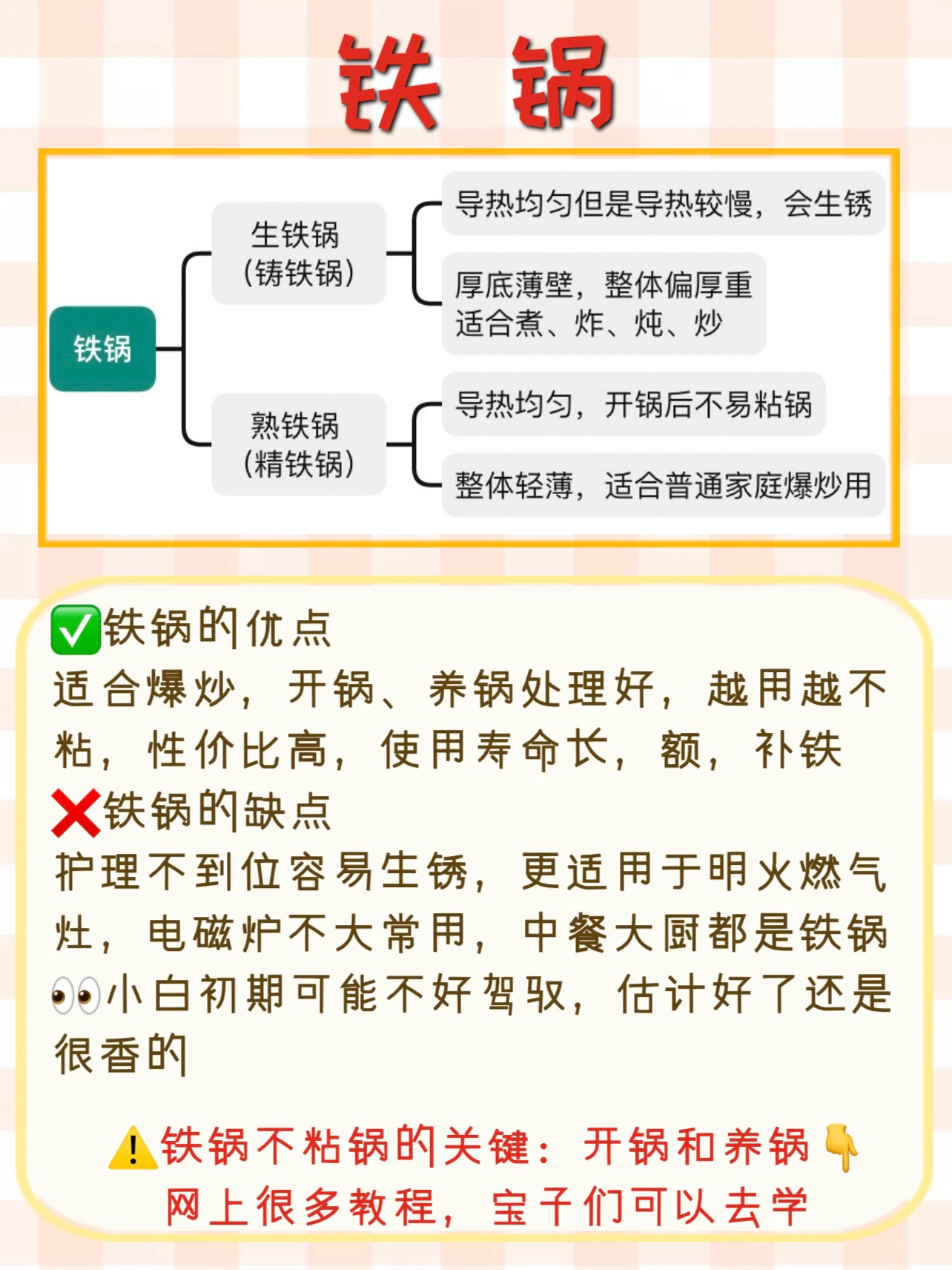 又分生铁锅和熟铁锅,正常家庭熟铁就够用了
