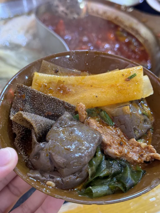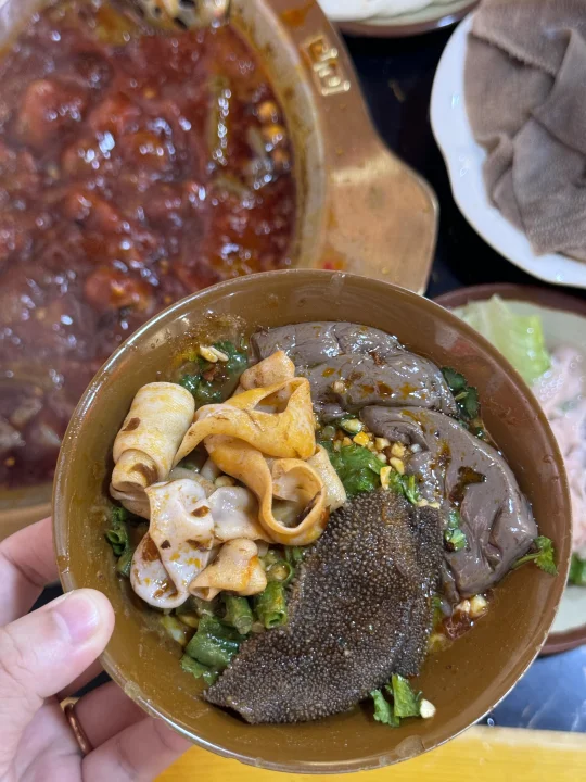 好吃到离谱啊啊啊啊😭 我真的太爱太爱火锅了!! 去到哪都忘不了那种。。。。 这个麻辣牛油锅底特别香!好jue!! 牛油香ju浓郁!!这涮什么能不好吃。。。 千层肚. 肥牛. 毛肚. 虾滑. 鹅肠. 鸭血 全都是我的zui爱!!! 挂满汤汁和蘸料的千层肚直接当面条嗦了😭 口感ju爽脆!越吃越上头!!! 外脆里嫩超Q弹超入味~ 下班和朋友一起吃火锅的感觉真的太快乐了😭 还有必须要说一下服务!服务很好,姐姐的笑容以及眼里有活✌️👏 📍刘万家火锅