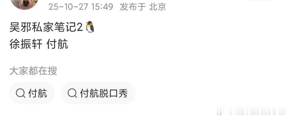 omg,私家笔记要拍 2 了,徐振轩和付航,脱口秀演员这个,资源严重降级,还不如程相[衰][衰]