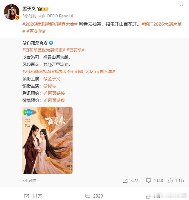 孟子义一天宣传三部剧孟子义三部待播作品孟子义一天宣传三部剧:《尚公主》《百花杀》《三线谜回》;孟子义粉丝好幸福[抱一抱]期待孟子义三部一番大女主剧 !快来预约吧~[给你小心心]
