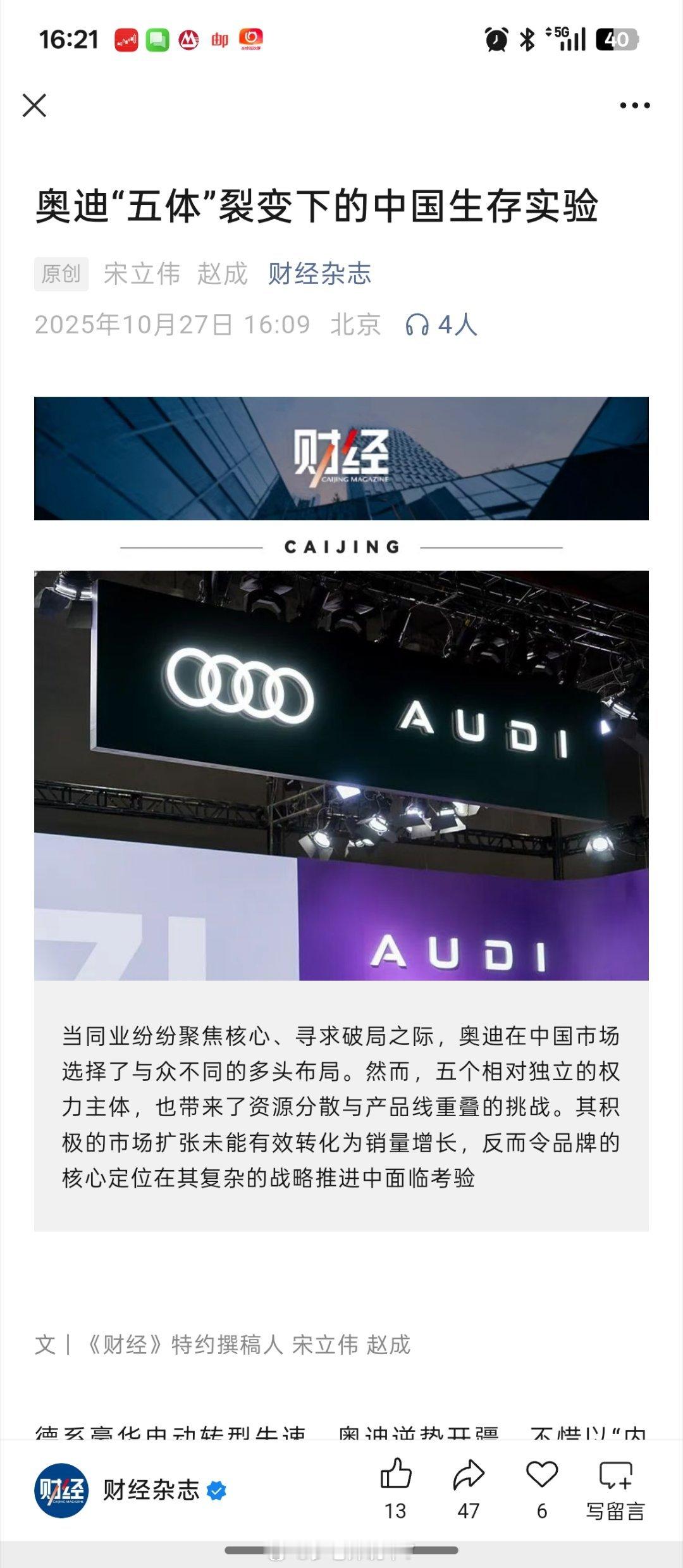 五体奥迪裂变,说实话奥迪在新能源上面的发力,比另外两家德系更坚决,新款的 Audi E5 上市之后反响也不错,其他不敢说,未来新能源汽车一定会有奥迪一席之地