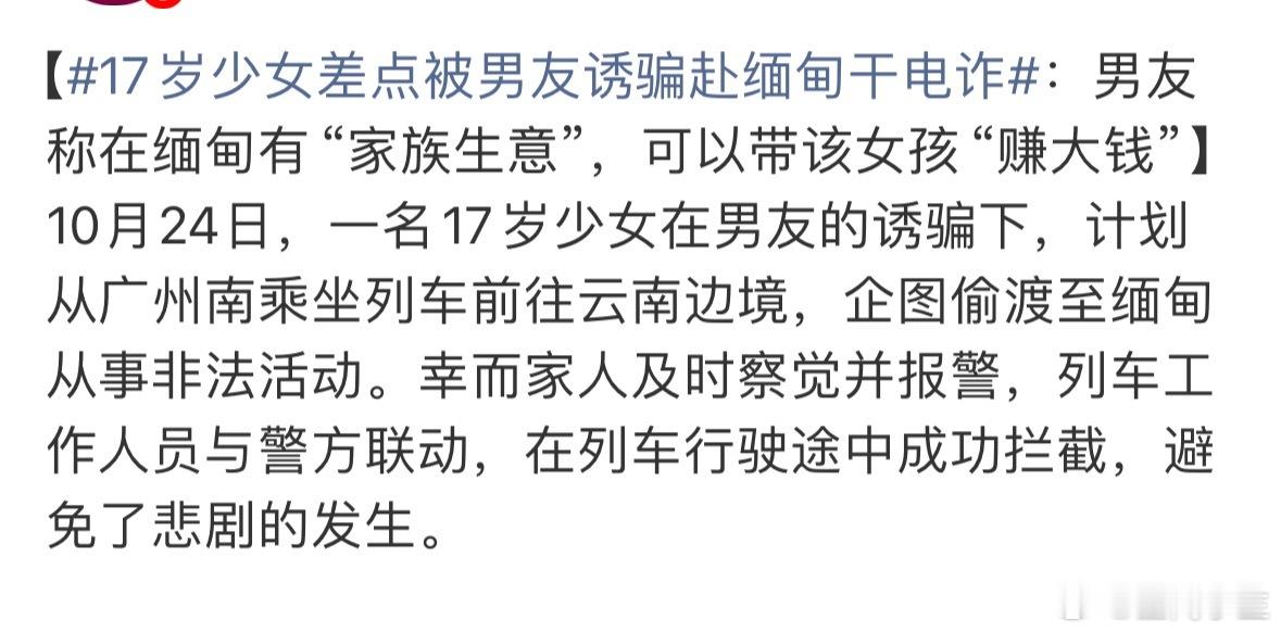 17岁少女差点被男友诱骗赴缅甸干电诈天上不会掉馅饼,大家还是要谨慎啊,特别是有些