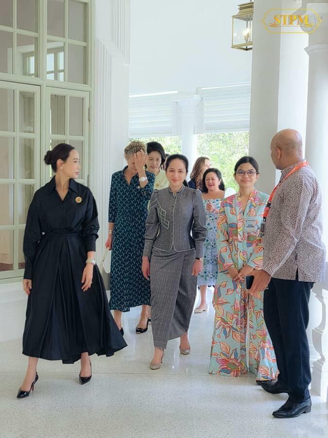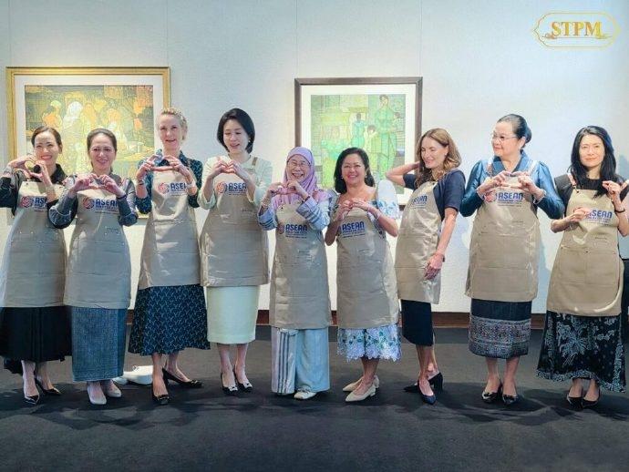 菲律宾第一夫人在吉隆坡出席活动,一袭蓝色印花裙确实惹眼!近日丽莎陪同小马科斯到马来西亚出席东盟峰会,还与女眷们一起互动。 丽莎颜值不高,身材娇小,在女人堆里却很有辨识度,主要是她选择的印花裙,因为这件裙装是菲律宾的传统服饰“蝴蝶裙”,上身效果清新养眼不说还减龄。 她与大家合影时,系着围裙挡不住裙子的光芒,对镜头比心笑容灿烂,走在人群中不抢镜,但一身蓝色花裙确实靓丽,走在别人后面照样让人不容忽视。