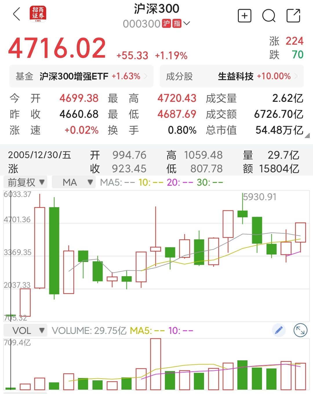 沪深300指数近期收盘新高,继续鼓吹万点,在恒指新高后