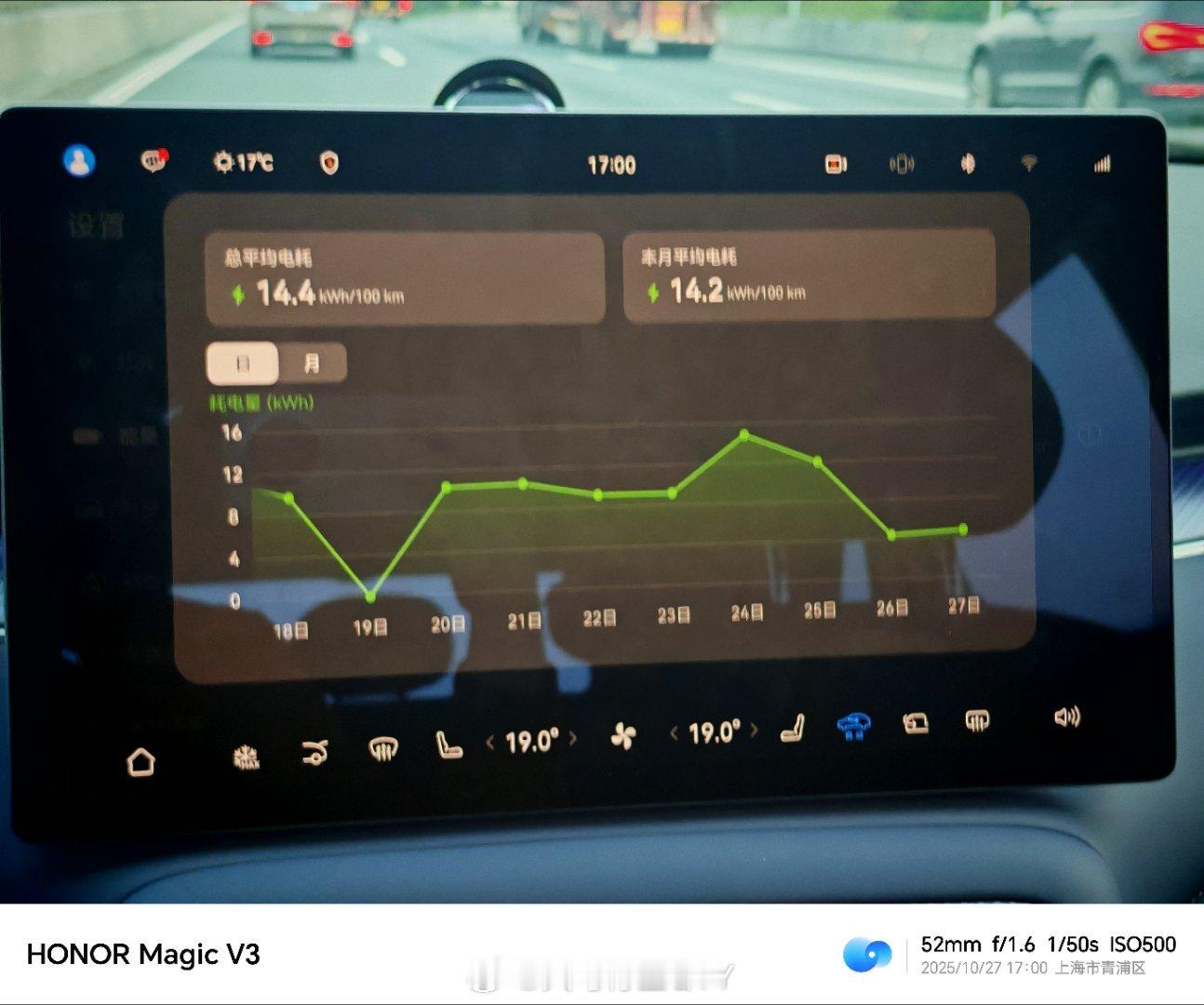 10月份天气开始凉快了,尚界H5本月平均能耗14.2,我感觉11月份能耗还会更低一点。尚界h5