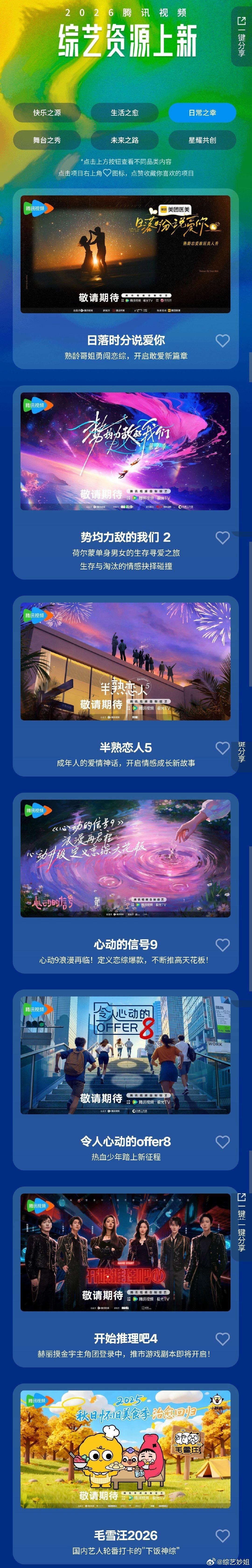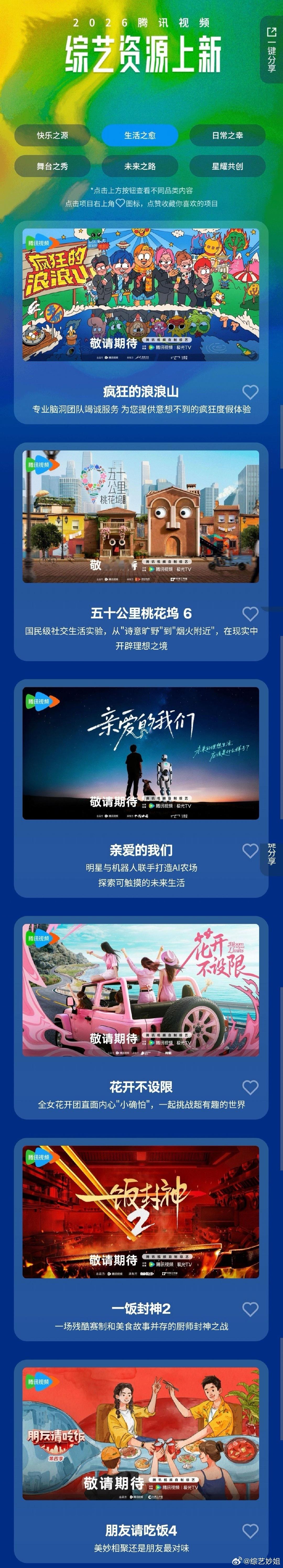 腾讯2026综艺片单里的一些新综艺: