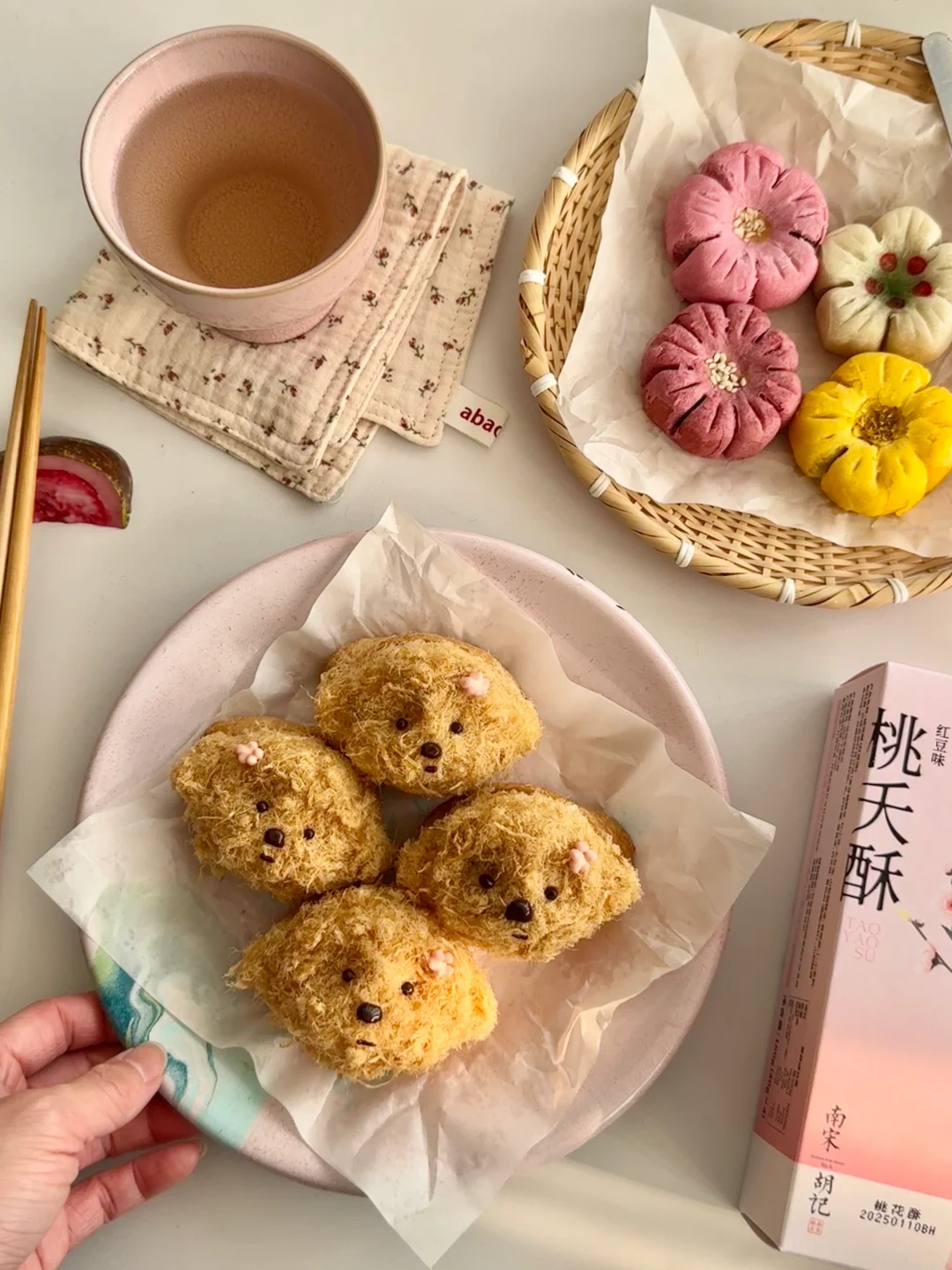 🍃春天的桃花酥:以桃花为形,内馅选用东北的红豆,入口沙滑甜润,细腻绵软