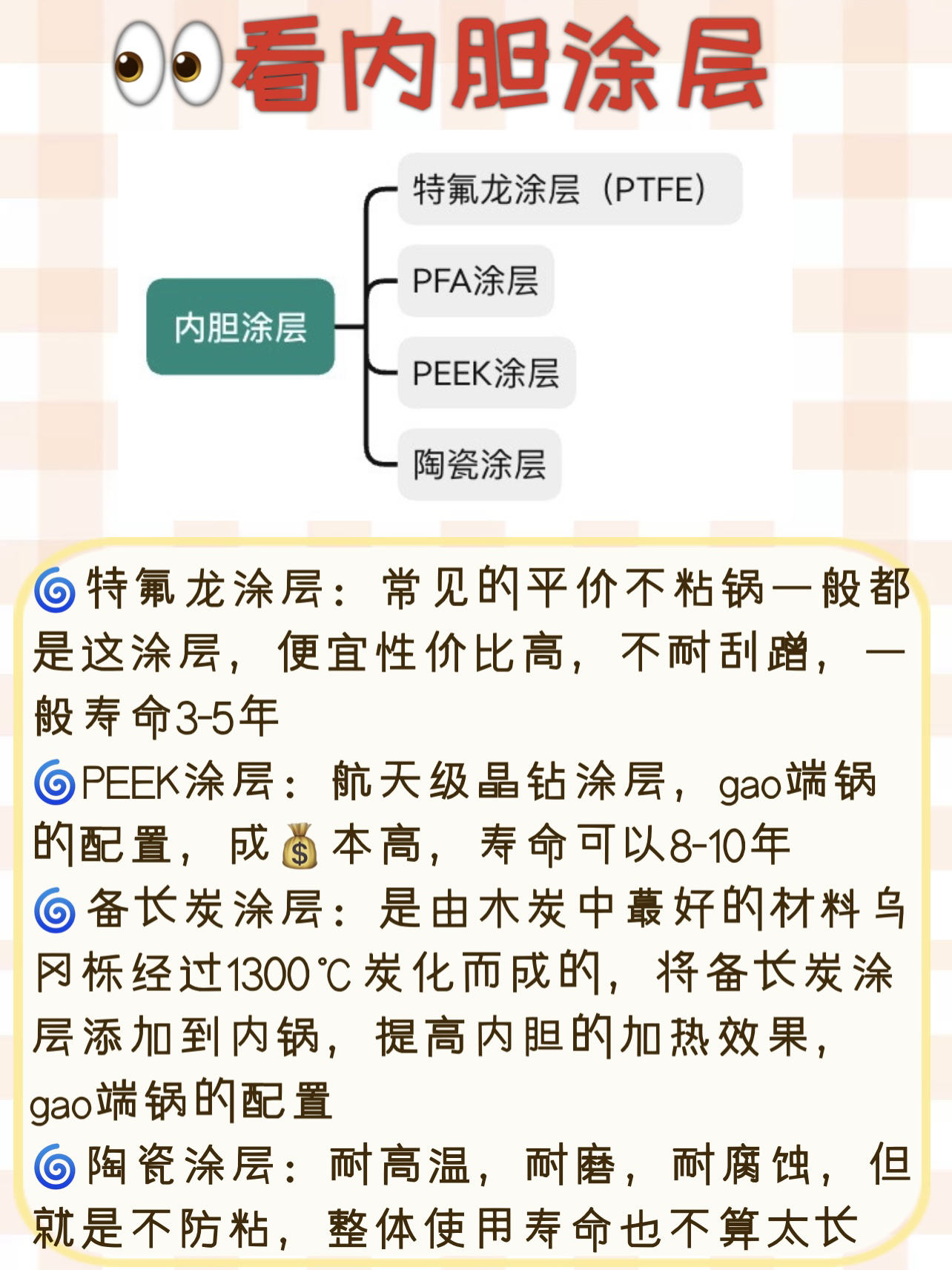 PEEK涂层:航天级晶钻涂层,gao端锅的配置,成💰本高,寿命可以8-10年