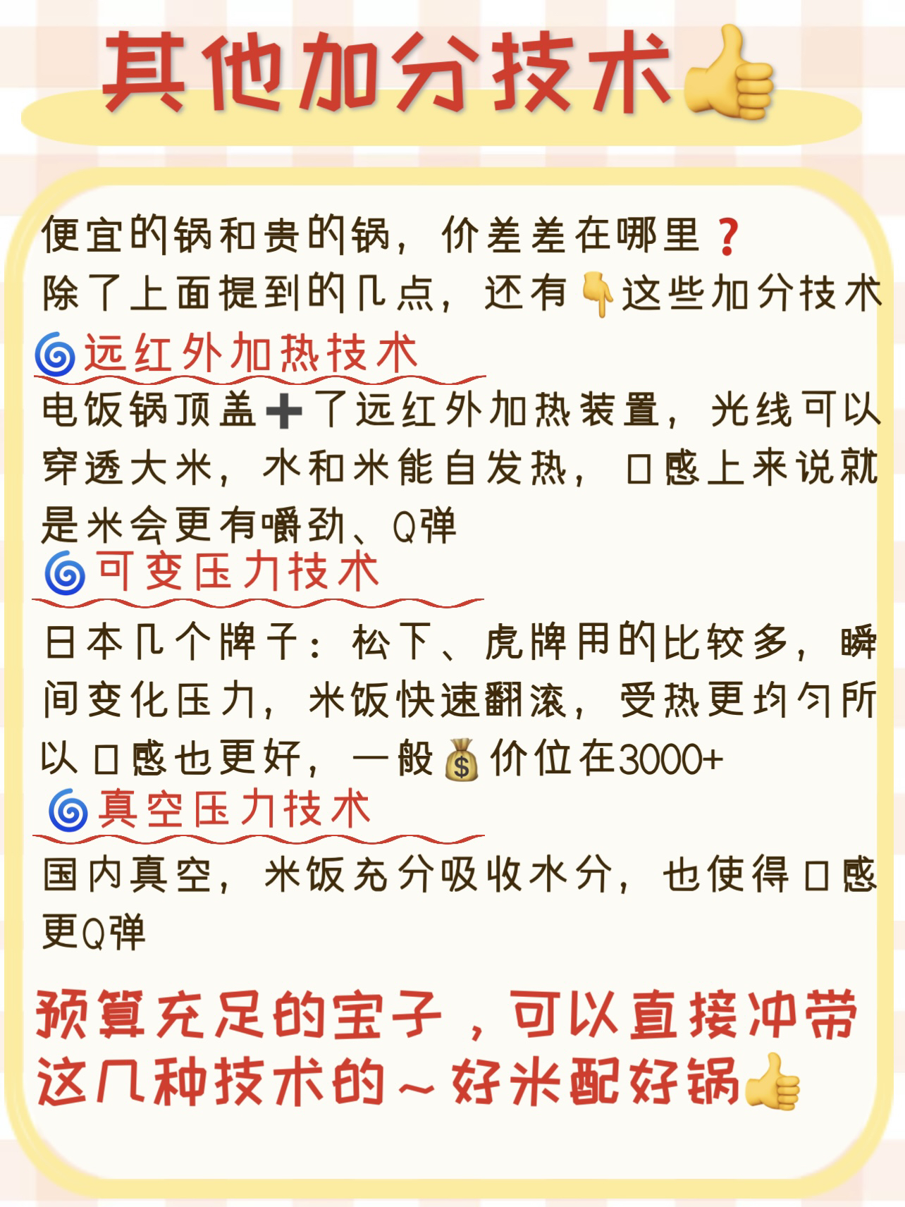 预算充足的宝子,可以直接冲带这几种技术的~好米配好锅👍