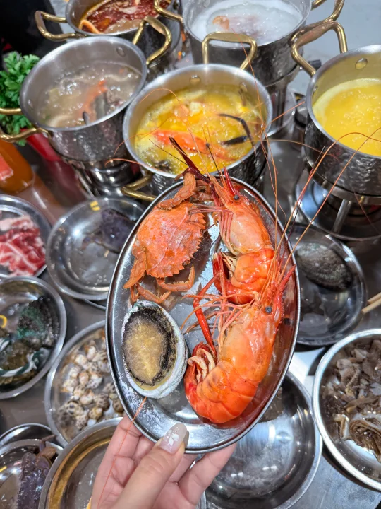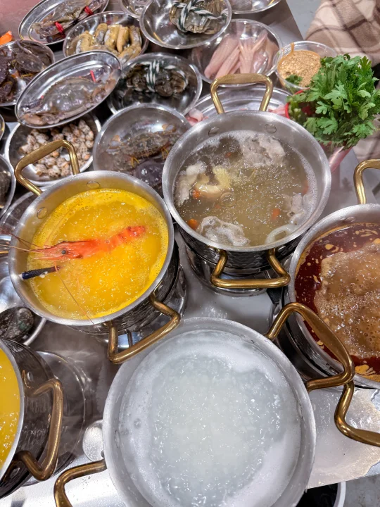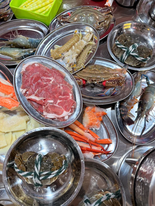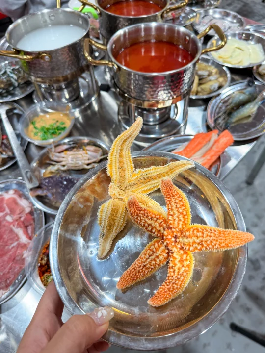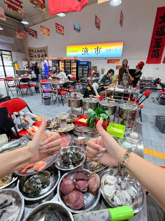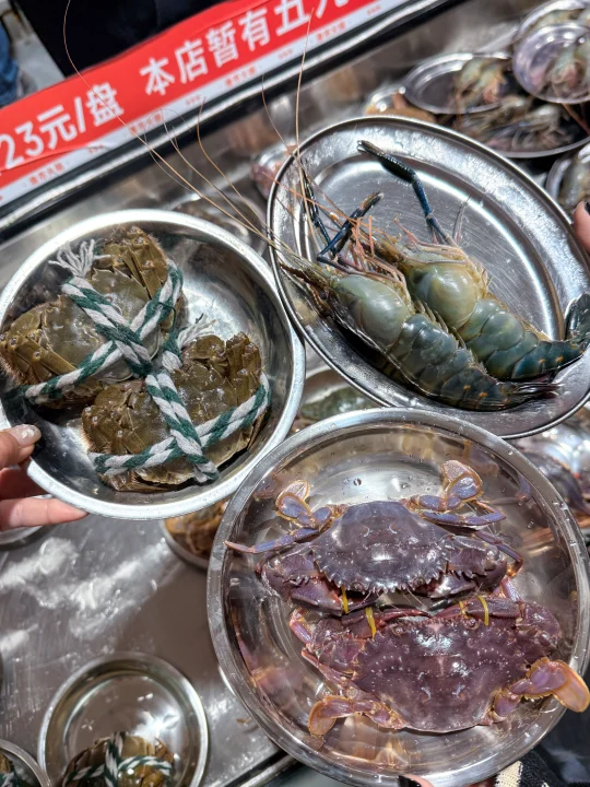 这家海鲜火锅工厂直接把码头搬进店里 🚢海港直供没有中间商赚差价 平价吃鲜活海货真的太香了🥹 🧺明档海鲜区全是活蹦乱跳的 鲜活现捞🎣自选按盘拿 均价都十几块一盘 🦐实现海鲜自由了 锅底种类丰富六种可选 🍲粥底火锅替你们尝了 既保留了涮品的原汁原味 🥚涮完海鲜再加入海鸭蛋煮粥 一口下去全是海鲜精华🐙