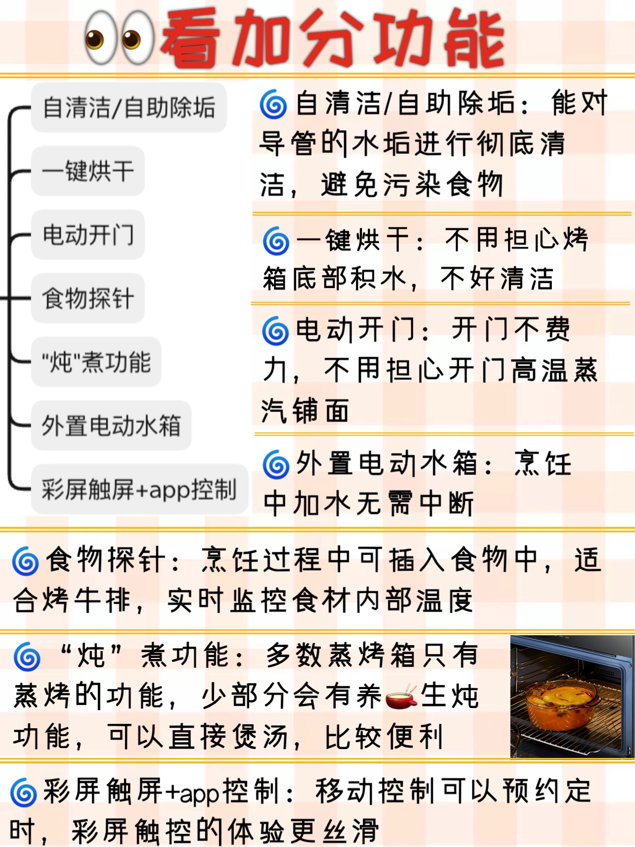 🌀“炖”煮功能:多数蒸烤箱只有蒸烤的功能,少部分会有养🫕生炖功能,可以直接煲汤,比较便利