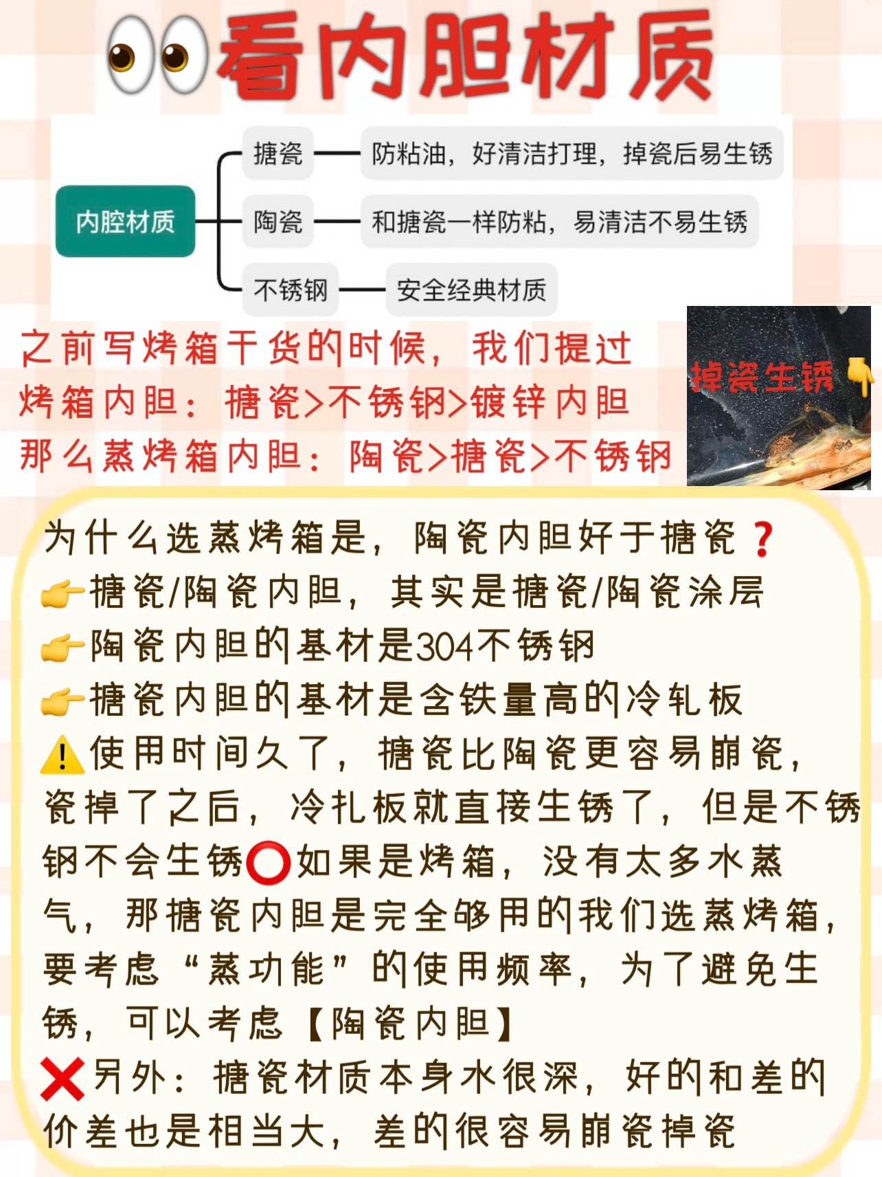 选蒸烤箱内胆:陶瓷>搪瓷>不锈钢,具体原因看图⬆️⬆️