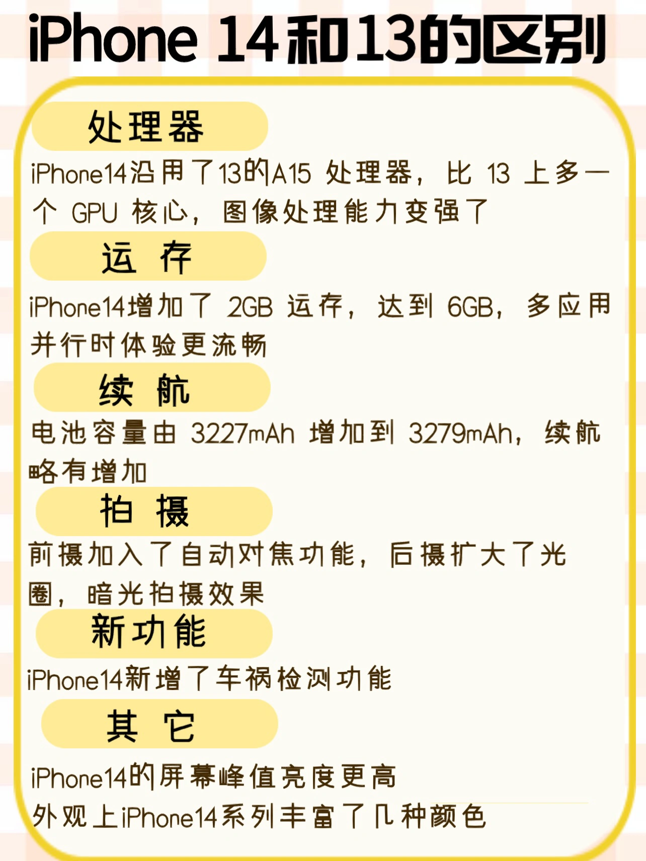 运存:iPhone14增加了 2GB 运存,达到 6GB,多应用并行时体验更流畅