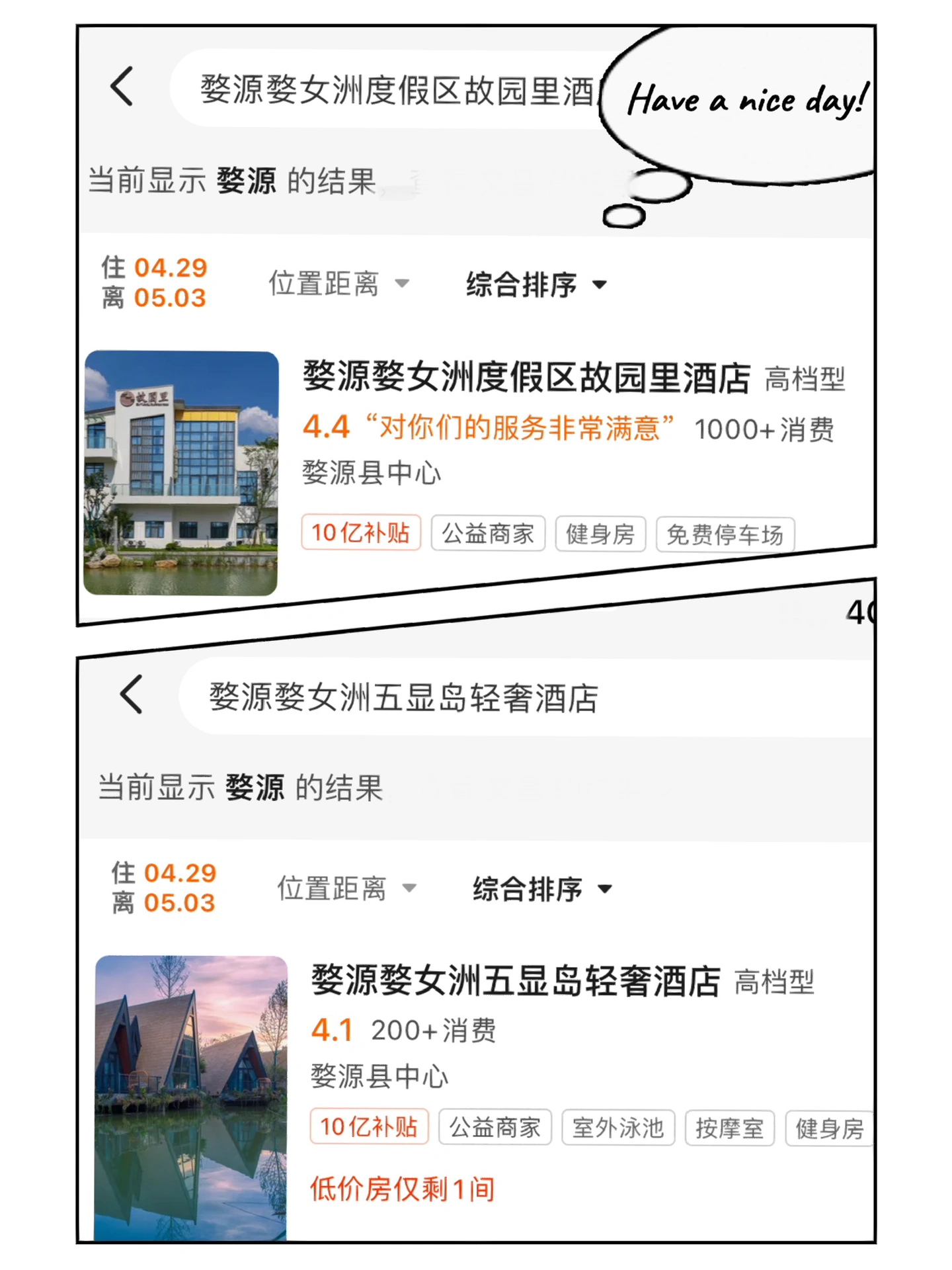 住宿也是看半天攻略,对比下来,发现四天住宿算下来,美团的价💰格直接省了两百多,果断冲美团