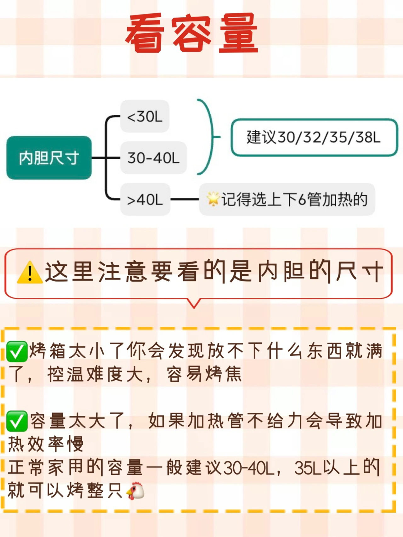家用的容量一般建议30-40L,35L以上的就可以烤整只🐔
