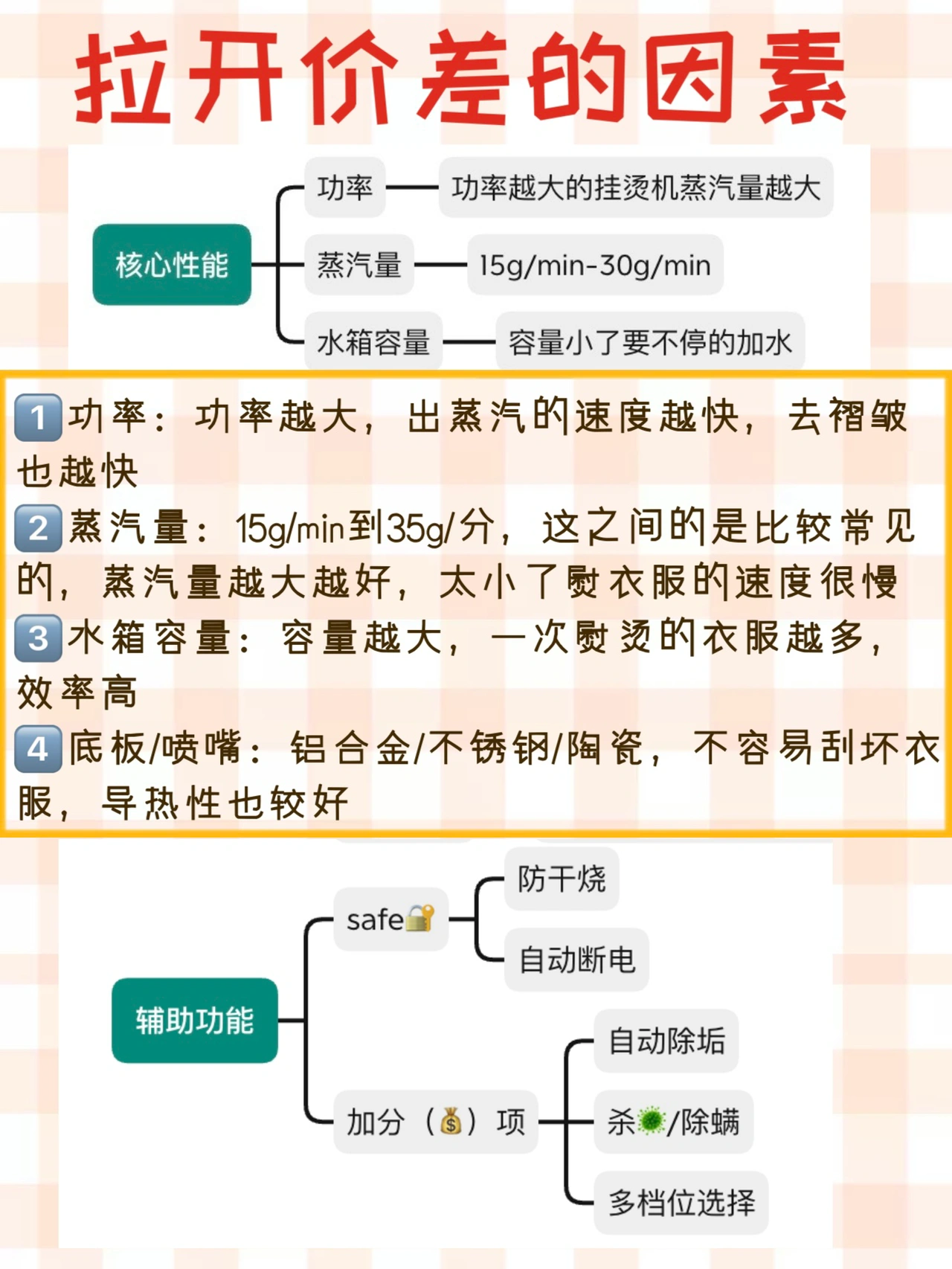 2⃣️蒸汽量:15g/min到35g/分,这之间的是比较常见的,蒸汽量越大越好,太小了熨衣服的速度很慢