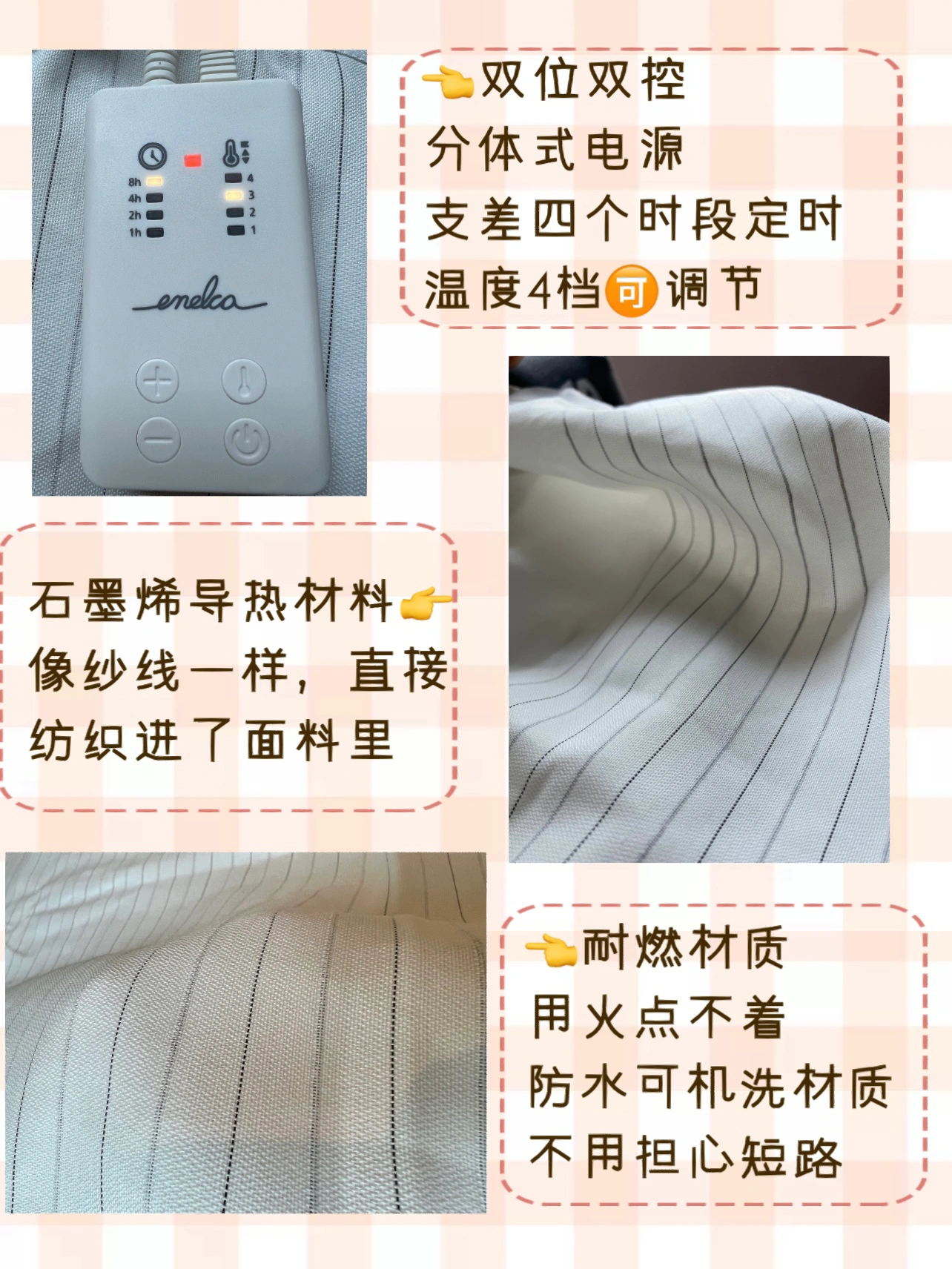 我自己是做了很多功课,然后入了一个enelca家的石墨烯的电热毯,是被小姐姐种草的,她当时提到这款可水洗,就狠狠心动了