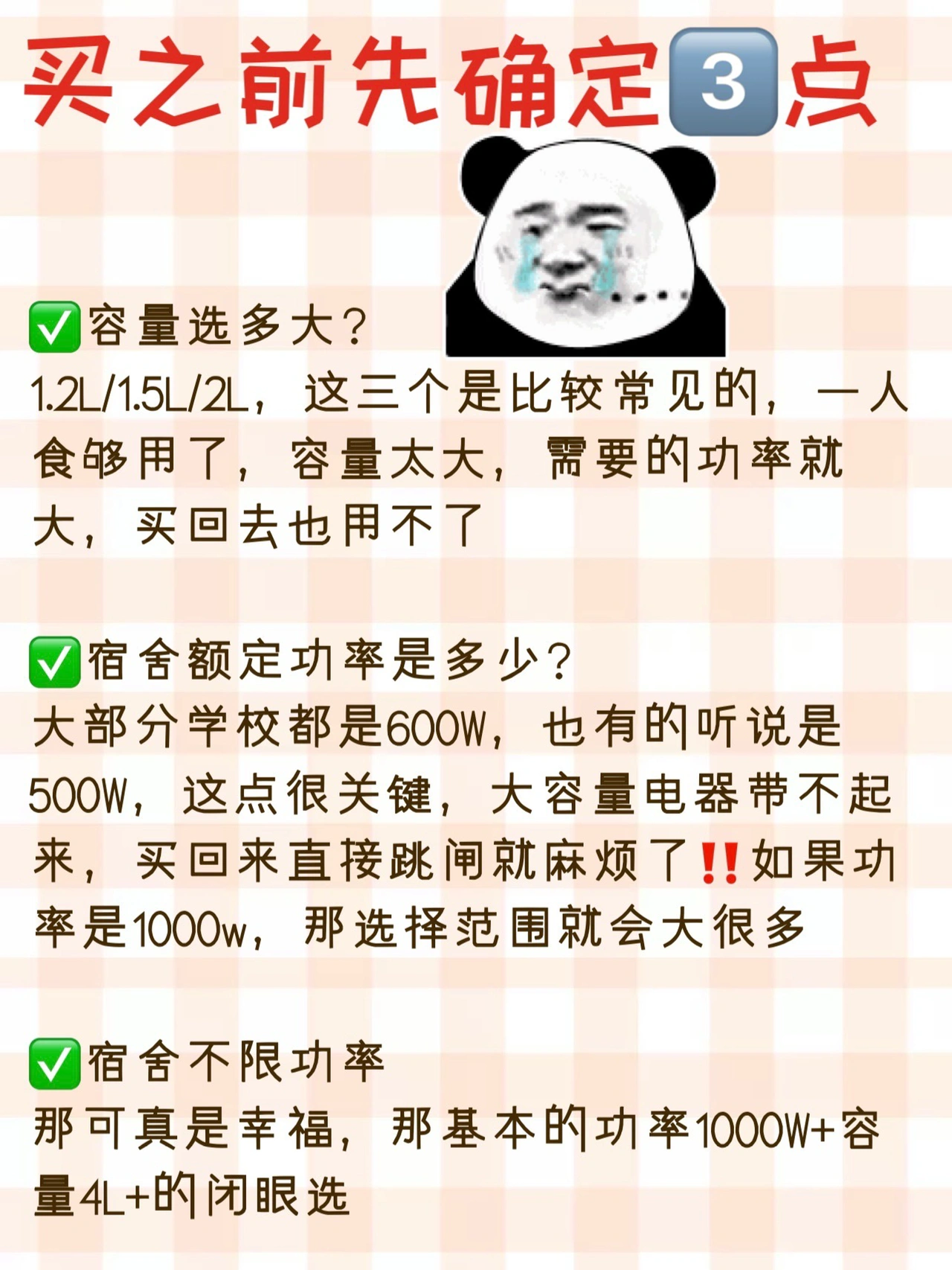 大部分学校都是600W,也有的听说是500W,这点很关键,大容量电器带不起来,买回来直接跳闸就麻烦了‼️如果功率是1000w,那选择范围就会大很多