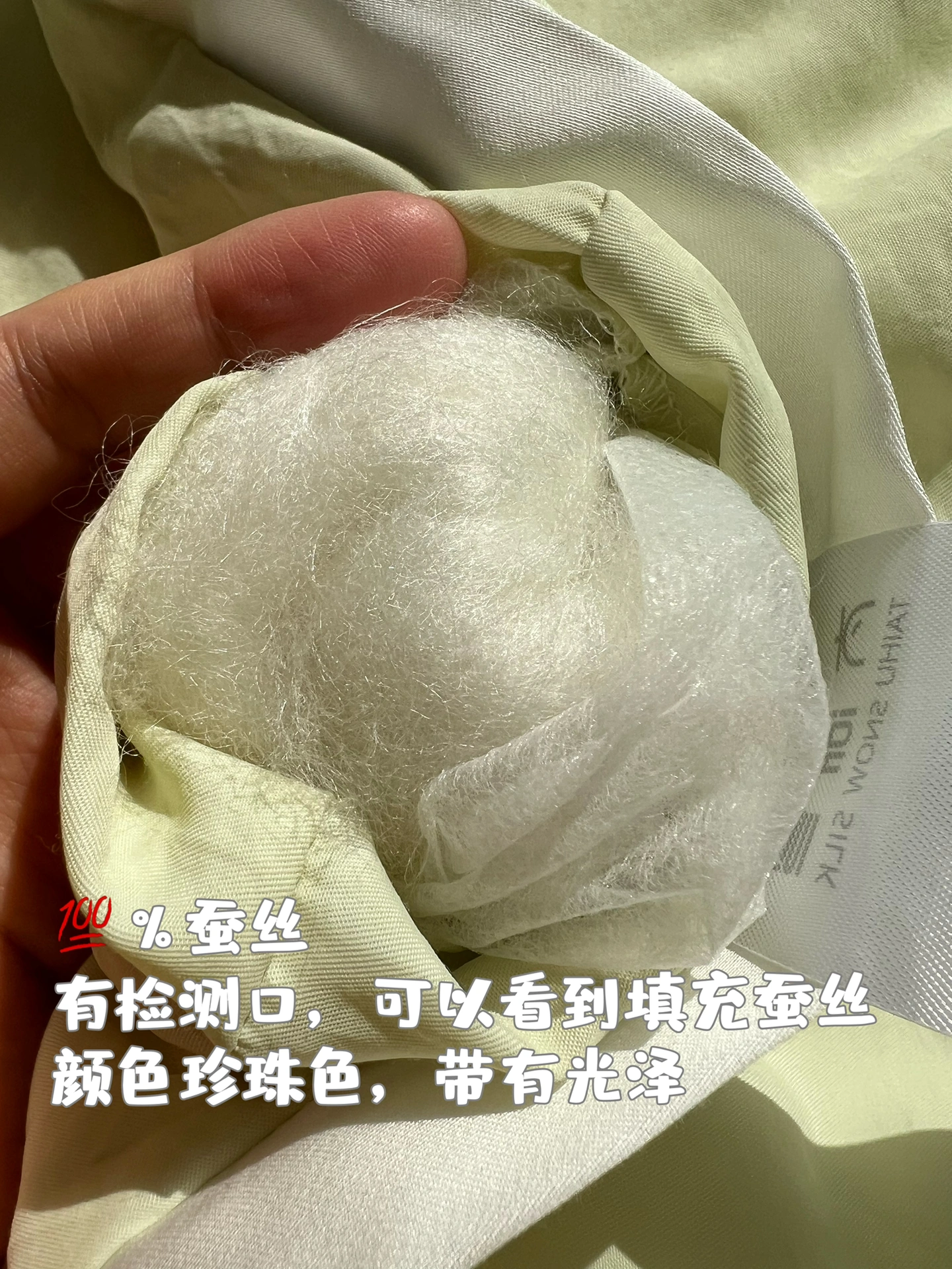 tips:蚕丝本身分桑蚕丝、柞蚕丝,丝长又分:短丝、中长丝、长丝,蚕丝含量也有70~💯%不等,不同的配置,价差能差好几百,具体可以看我之前出的蚕丝被攻略