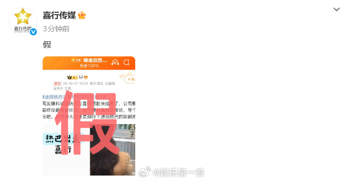 嘉行否认和迪丽热巴切割快结束了嘉行回应和迪丽热巴切割快结束了 回应曝迪丽热巴与嘉行切割快结束了:“假 ”↓