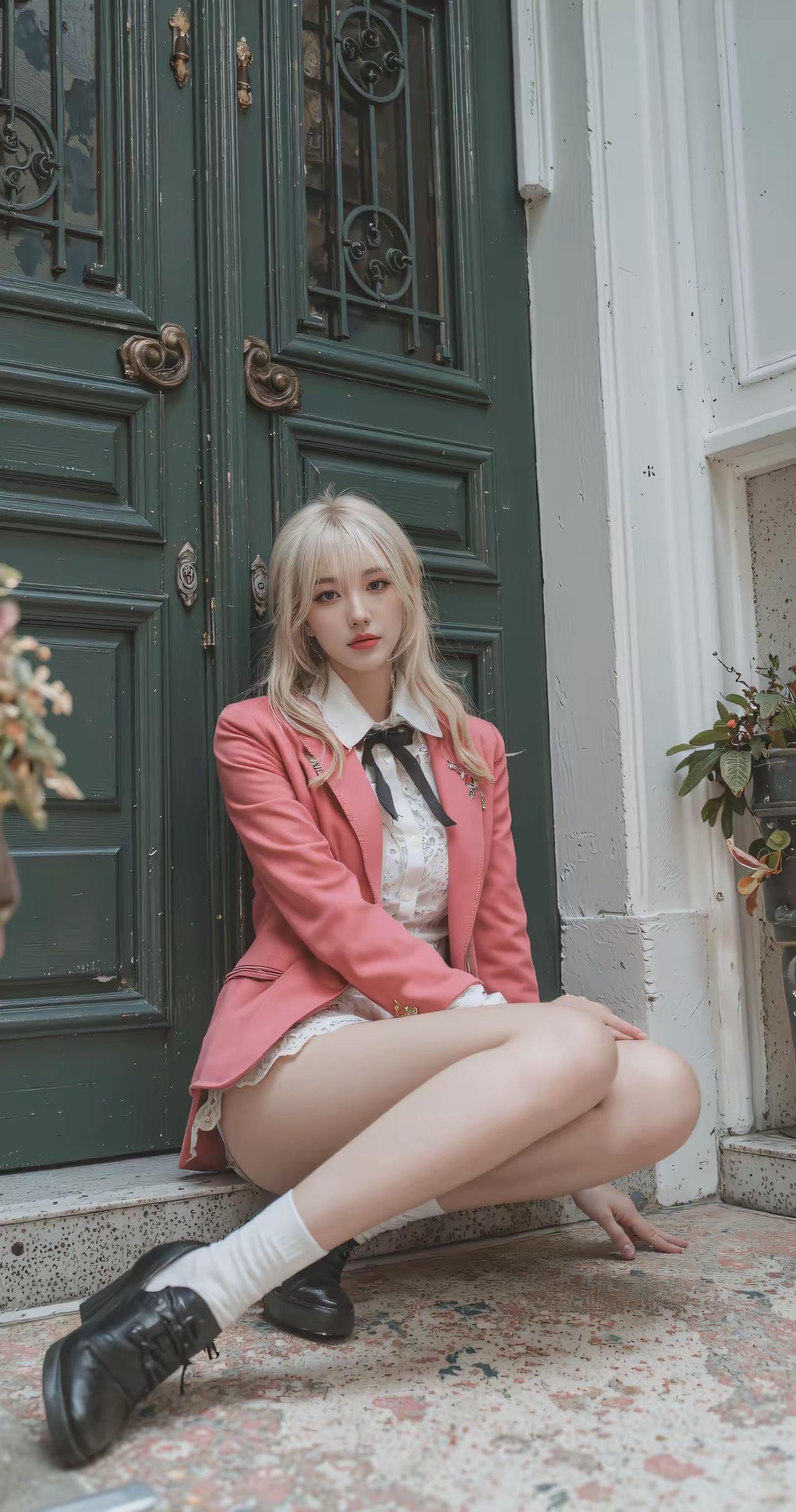 美图欣赏,看图写诗 《廊中雅姬》 廊中呈雅色,灰裙映芳姿。 云鬓风前逸,明眸画里