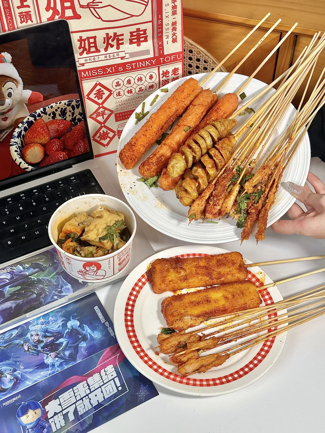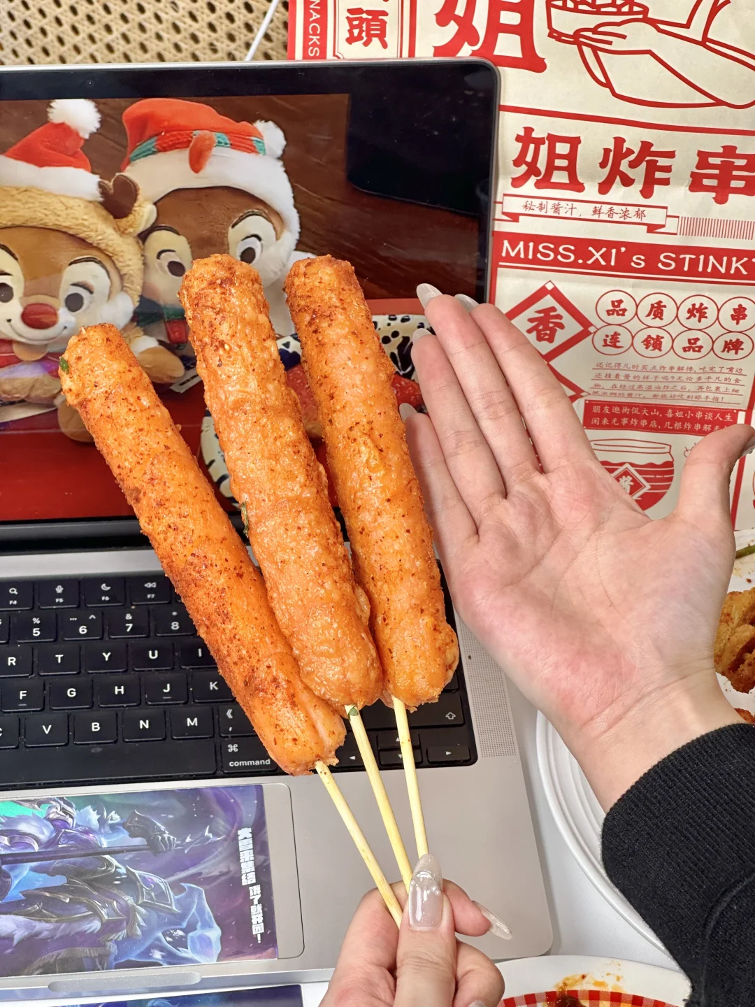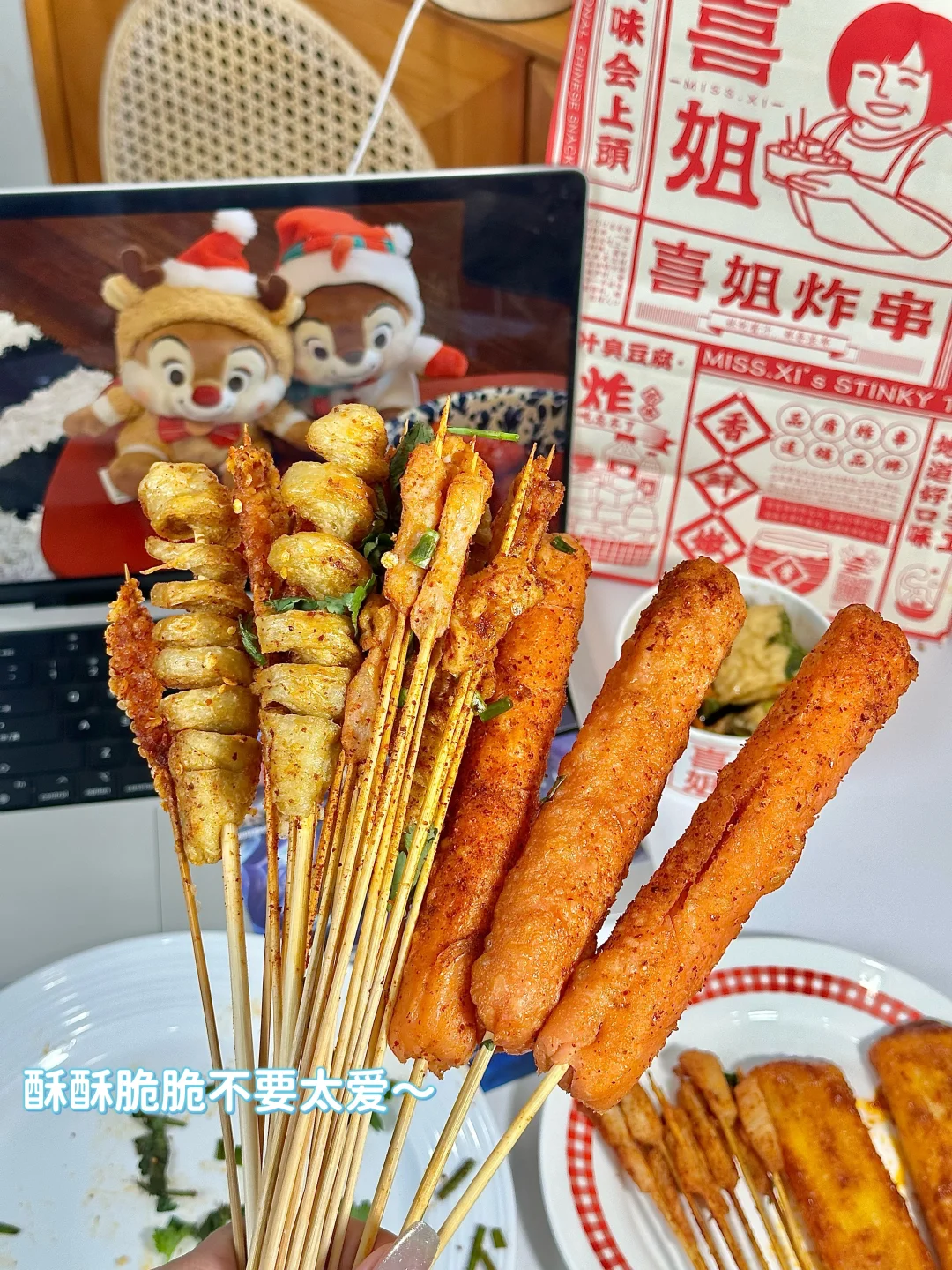 我每次吃都点喜姐这些 鸡柳串、淀粉肠、大面筋和鸡肉串